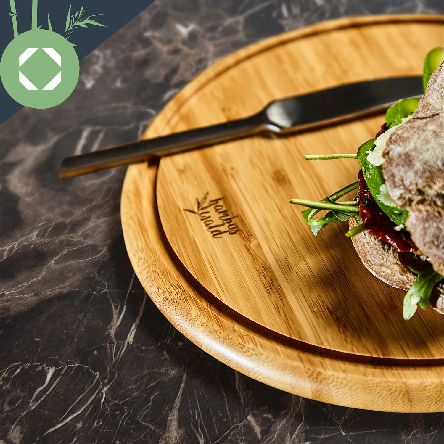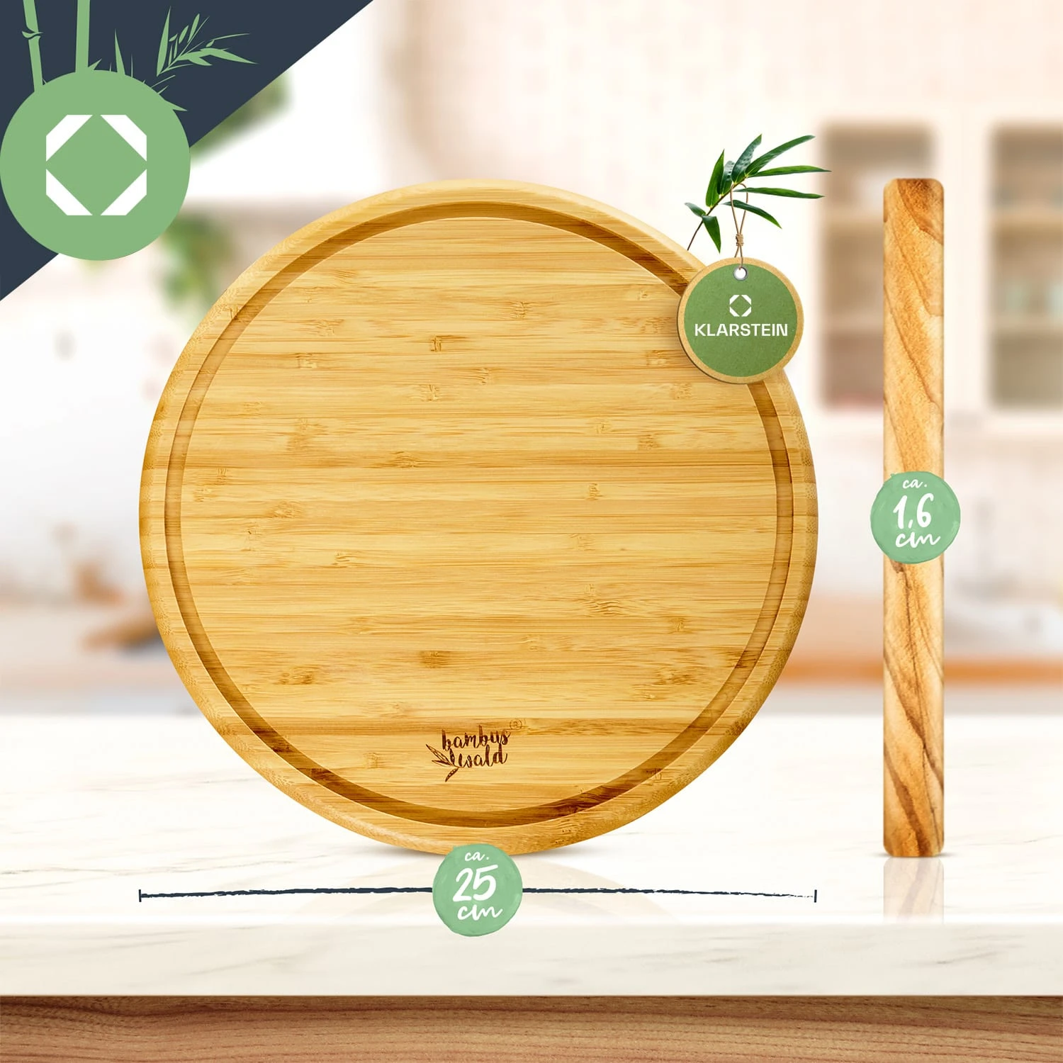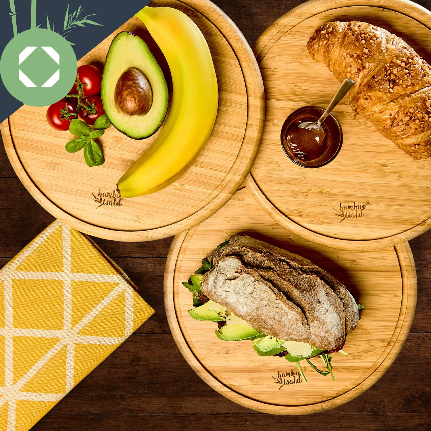 - 3er-Set: runde Bambusbrettchen mit Krümelrille