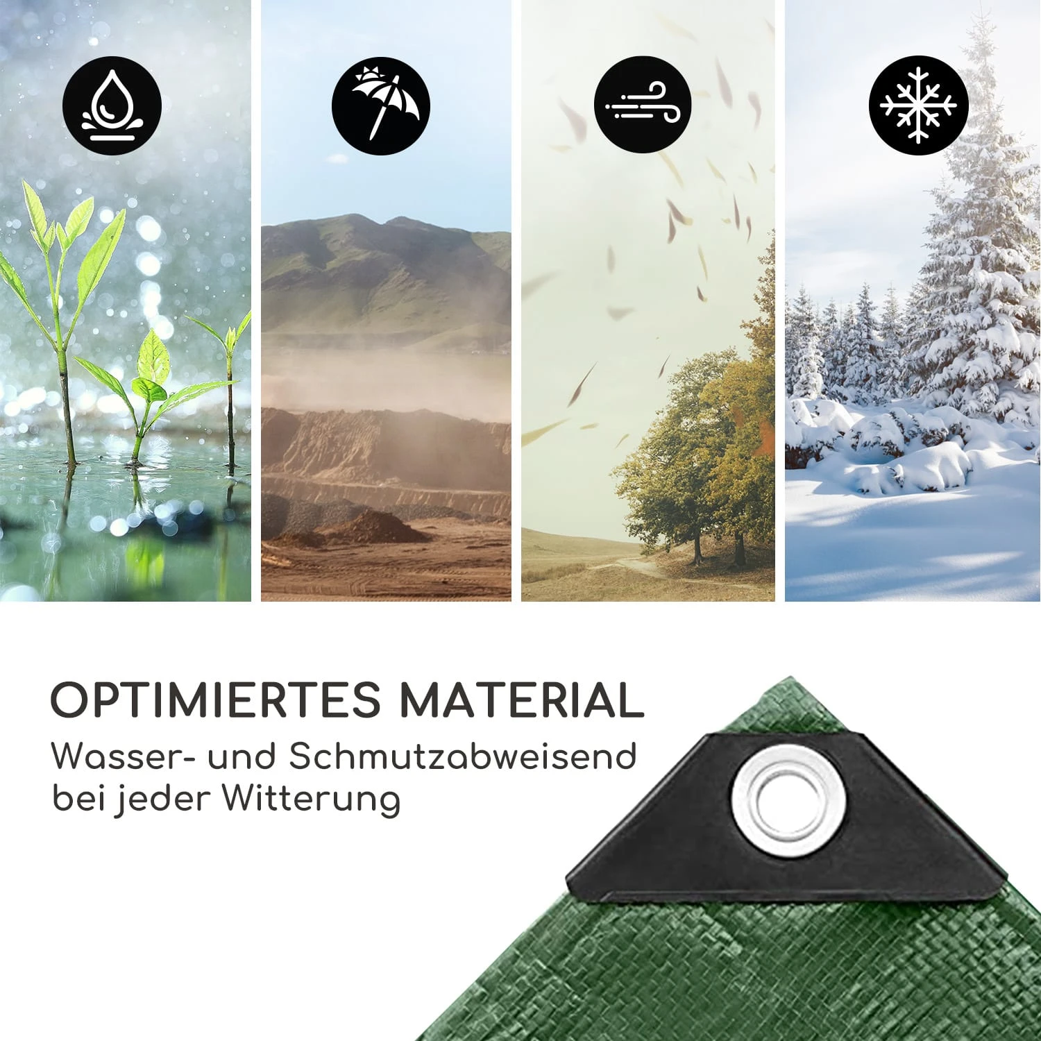 Ein Multitalent im Outdoor-Bereich: Die blumfeldt Aegis Gewebeplane aus robustem Kunststoff ist überall dort im Einsatz, wo sie gebraucht wird. Ob bei der Gartenarbeit, als Abdeckung für Kaminholz, Gartenmöbel, Motorräder und Sandkästen oder beim Camping als wasserdichte Zeltunterlage. Die verstärkten Ecken und der kurze Lochabstand sorgen für eine hohe Belastbarkeit. Das strapazierfähige Material ist schmutzabweisend, wetterfest und schützt auch vor Sonnenstrahlen. Mit dem beiliegenden Befestigungsseil bist du auf jeden Einsatz vorbereitet.