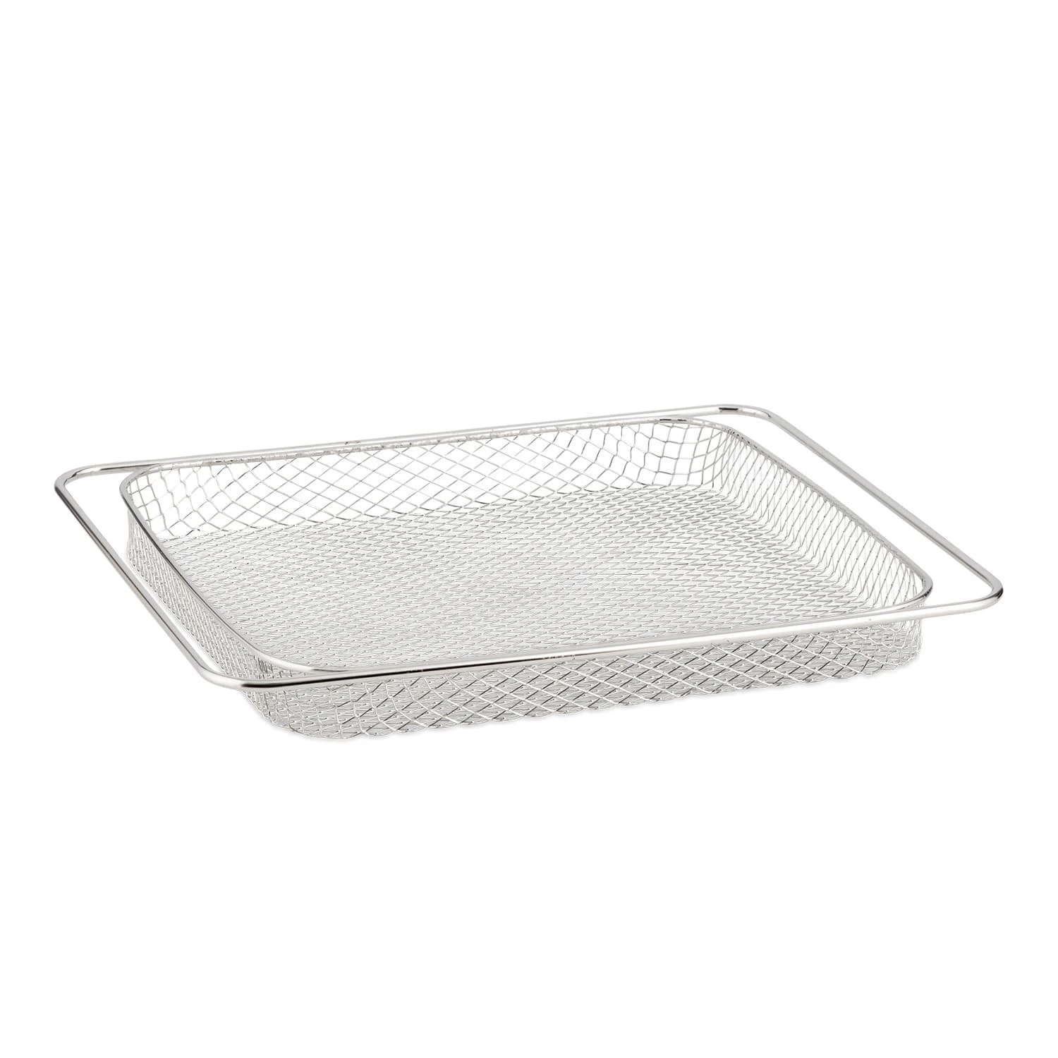 Der Gitterkorb der Klarstein AeroVital Chef Cube Heißluftfritteuse eignet sich hervorragend zur Zubereitung von großem und kleinem Frittiergut wie Chicken Wings oder Kroketten. Das engmaschige Gitter sorg dafür, dass auch kleine Speisestücke nicht durch das Gitter fallen und die Heißluft dein Essen von allen Seiten gleichmäßig frittiert. Durch die Fertigung aus Edelstahl ist der Korb besonders resistent und lässt sich leicht reinigen.