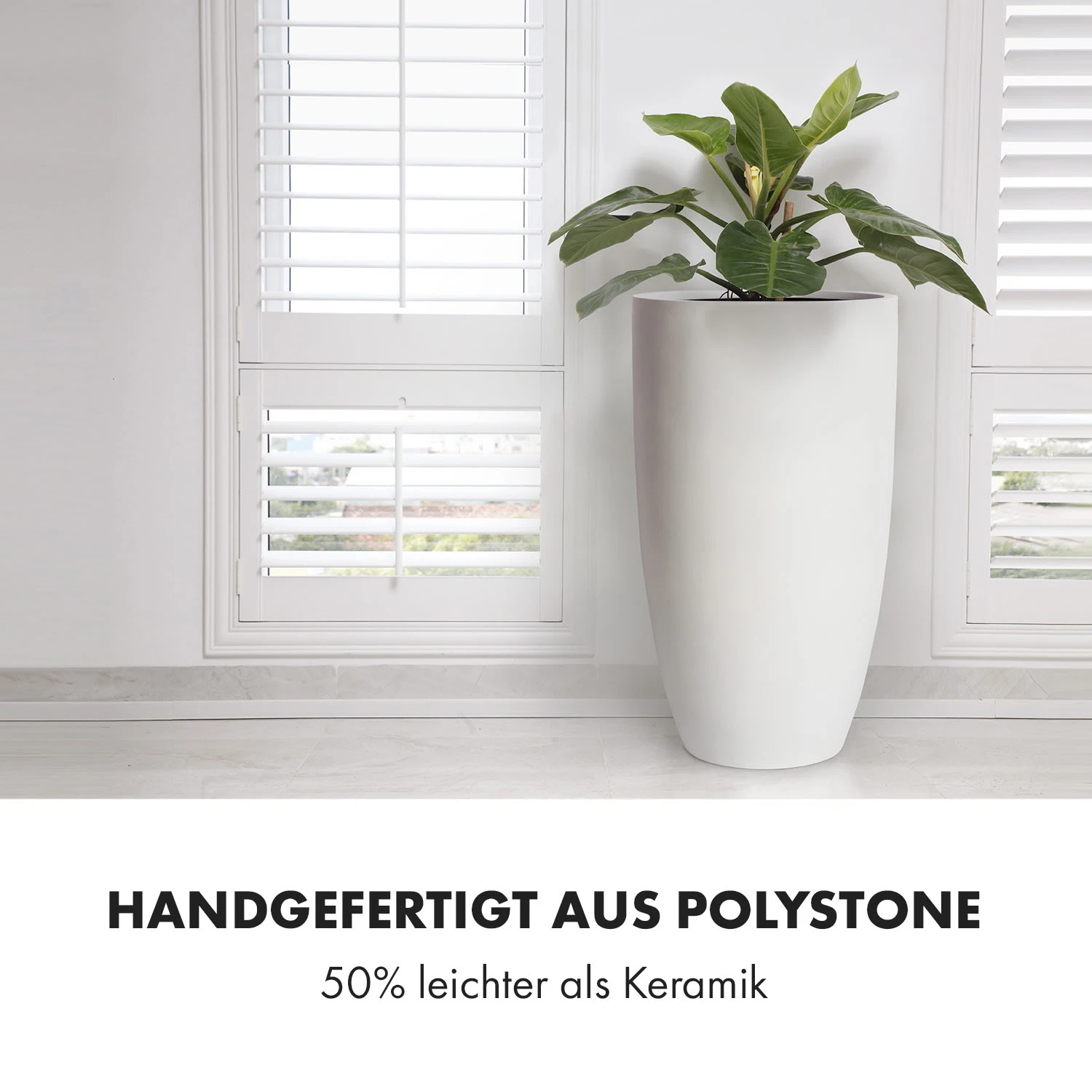 Im edlen Fox & Fern by blumfeldt Almere Blumentopf aus Faserstein fühlen sich deine Pflanzen – von der Azalee bis zur Zimmerpalme – rundherum wohl und gedeihen prächtig. Faserstein ist nicht nur 70 % leichter als Beton, er ist darüber hinaus auch UV- und frostbeständig. Zudem ist er sehr pflanzenfreundlich, sodass du deine blättrigen oder stacheligen Mitbewohner direkt in den Almere einpflanzen kannst. Dank des Wasserablaufloches am Boden, das du mit dem entsprechenden Stopfen beliebig öffnen und schließen kannst, ist immer für eine angenehme Feuchtigkeit gesorgt.
