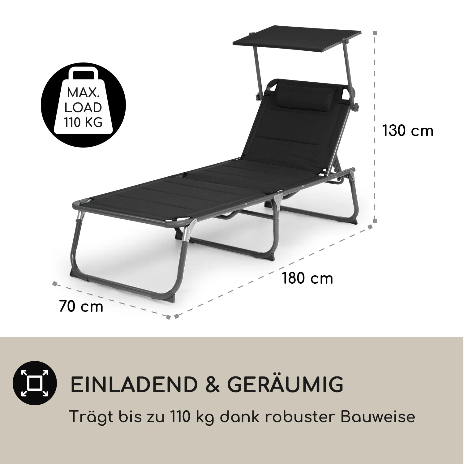 - Sitzfläche: ca. 70 x 140 cm (BxL)