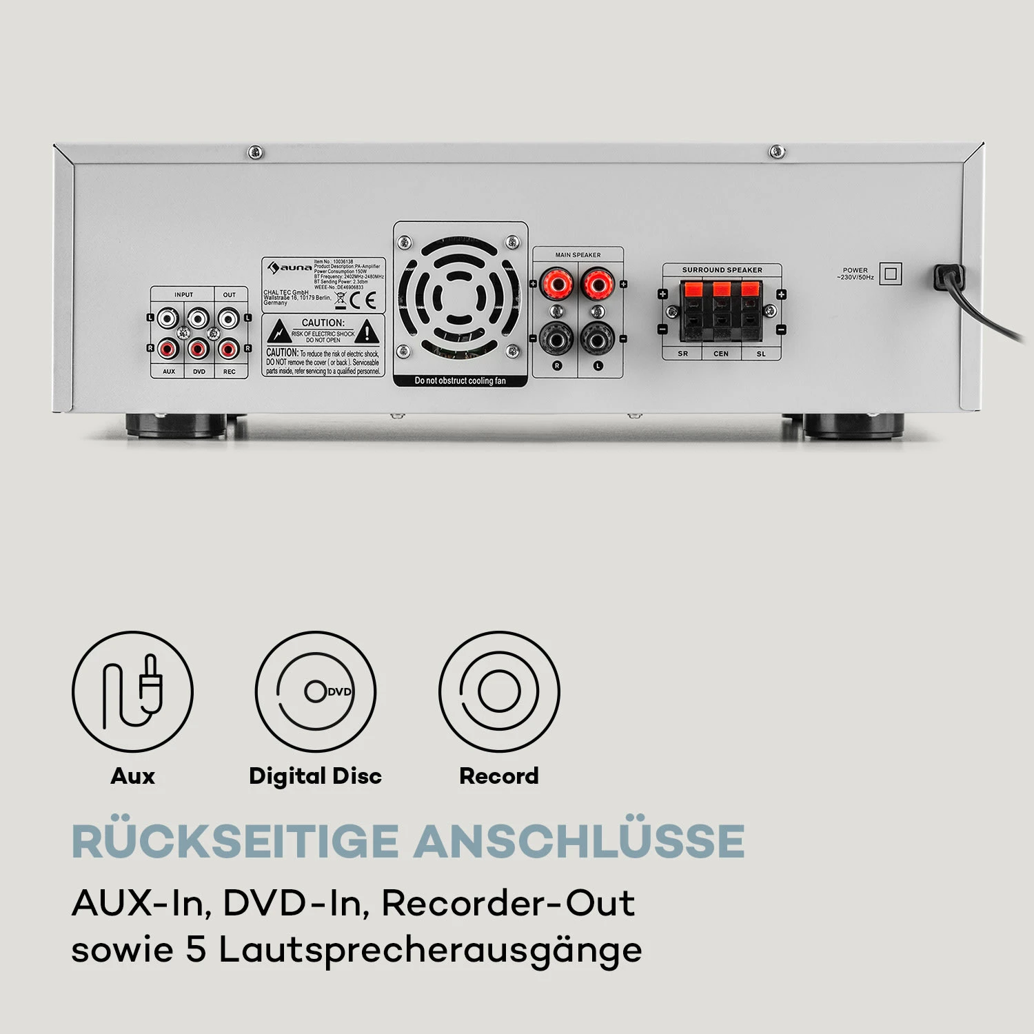 Als universell einsatzbares Heimgerät ist der auna AMP-218 BT 5.1-Verstärker die ideale Bereicherung für alle Freunde des smarten Musik-Vergnügens.