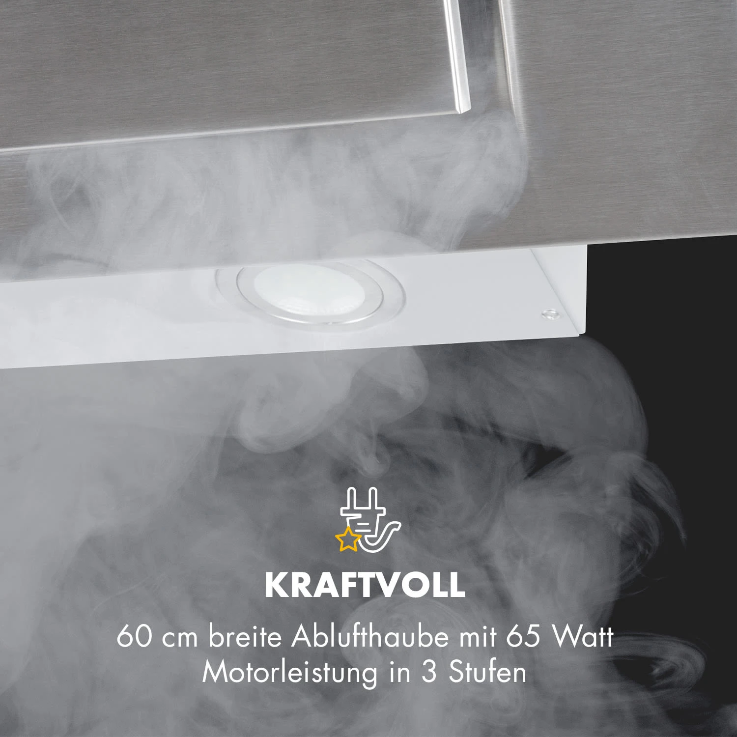 Beste Luft in kleinen bis mittelgroßen Küchen: Die Klarstein Athena Dunstabzugshaube ist ein edler Glanzpunkt und beseitigt schwungvoll Dampf und Dunst beim Kochen. Mit 65 Watt Motorleistung, 3 Geschwindigkeiten und bis zu 350 m³/h Abluftleistung sorgt sie für freie Sicht. Neben den starken Leistungsdaten überzeugt die Klarstein Athena Wandabzugshaube als luxuriöser Teil der Kücheneinrichtung: Sie verleiht jeder Küche ein modernes Aussehen, das durch eine 2-teilige Kaminverkleidung ergänzt wird.