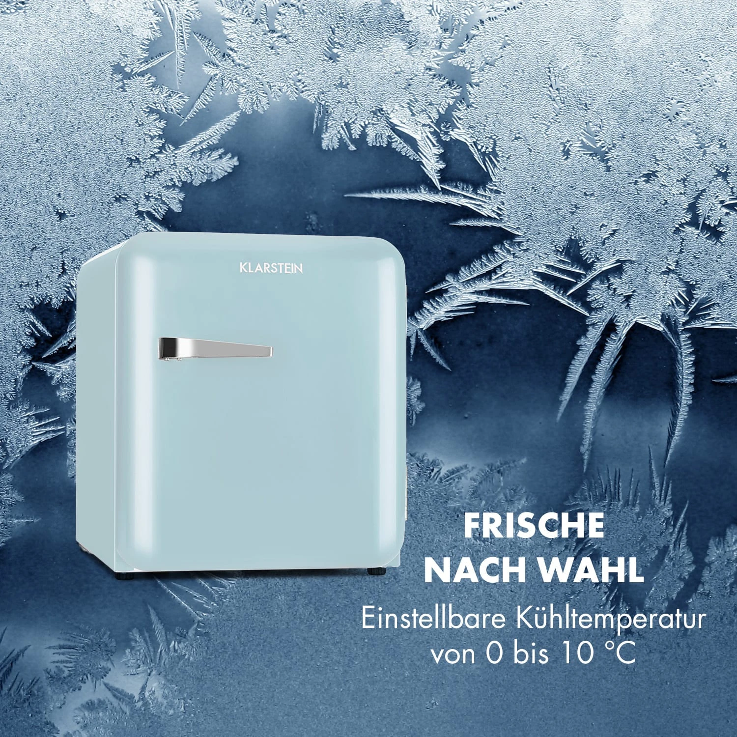 Frisch & modern: Der Klarstein Audrey Mini Kühlschrank ist wie eine erfrischende Zeitreise in die 50er-Jahre.