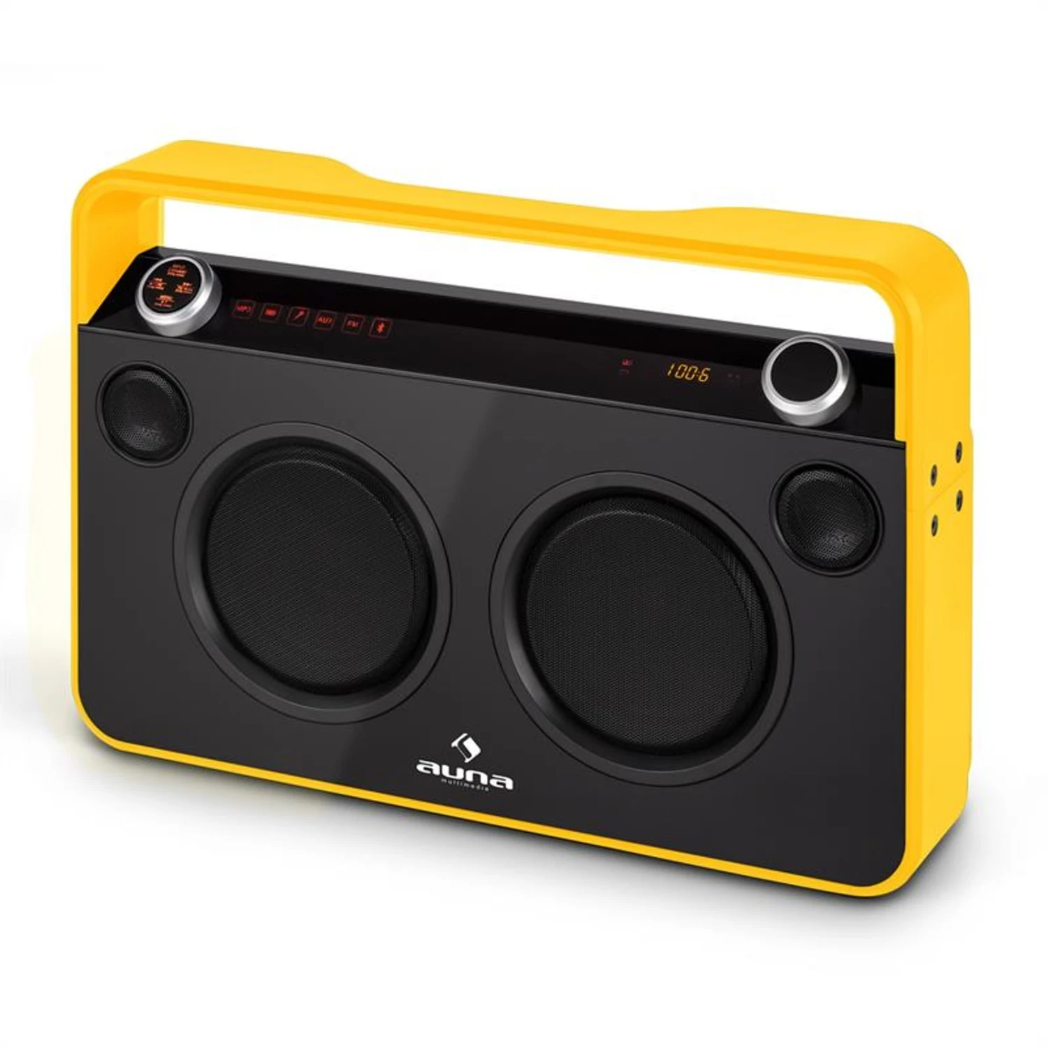Der Auna Bebop gehört zur neuesten Generation der Ghettoblaster und ist dank vielseitigem Anschlussspektrum und großem Funktionsumfang ideal für Tänzer, Sänger und Musikliebhaber.