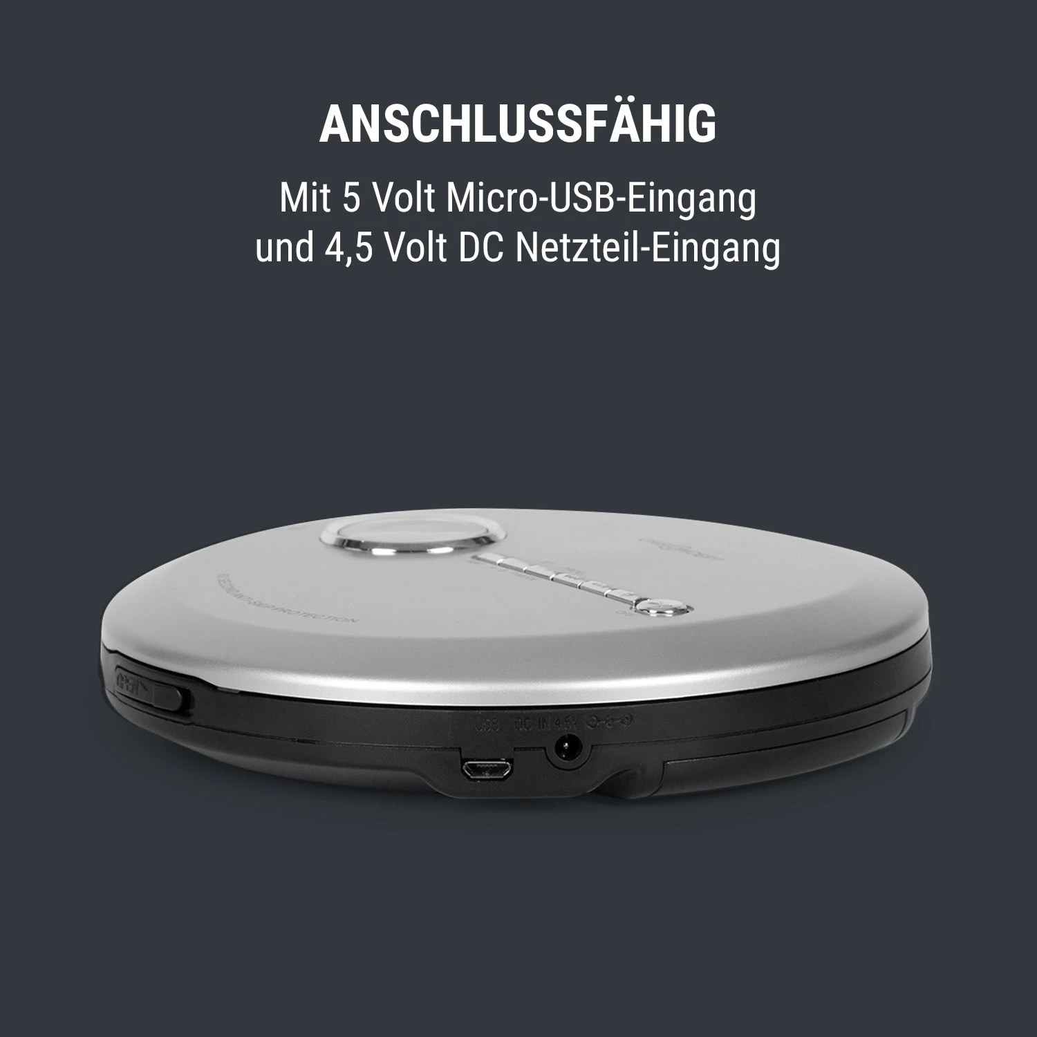 Die Rückkehr einer Legende: Mit dem oneConcept CDC 100MP3 Discman kehrt die CD in den mobilen Gebrauch zurück – komplett mit modernster Technik! Er ist in der Lage, die Formate CD, CD-R, CD-RW und MP3-CD zu erkennen und abzuspielen. Dank des Betriebs mit Batterien ist man jederzeit unabhängig von Stromquellen und kann bis zu 8 Stunden auch unterwegs Musik hören. Zuhause lässt er sich dann auf Wunsch auch problemlos mit einem Netzteil oder Micro USB-Kabel betreiben, das jeweils einfach in die zugehörige Buchse eingestöpselt wird.