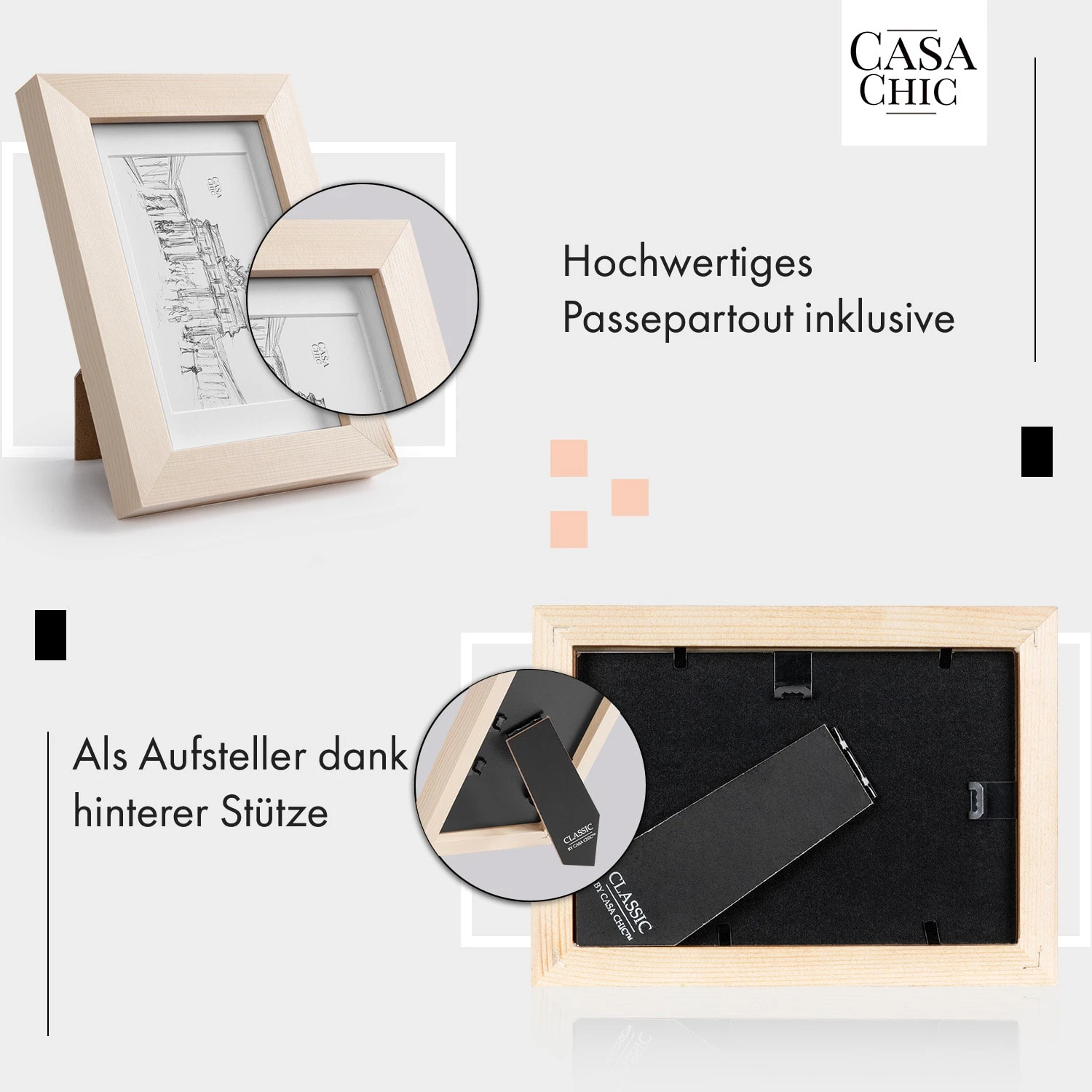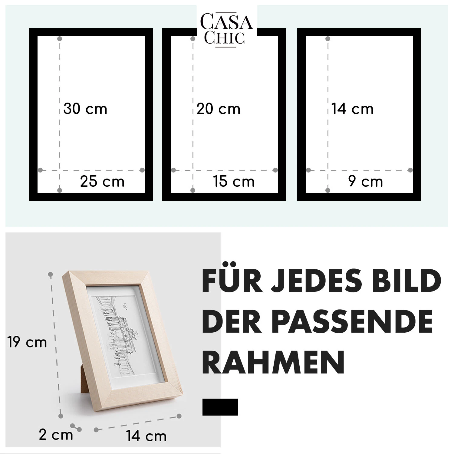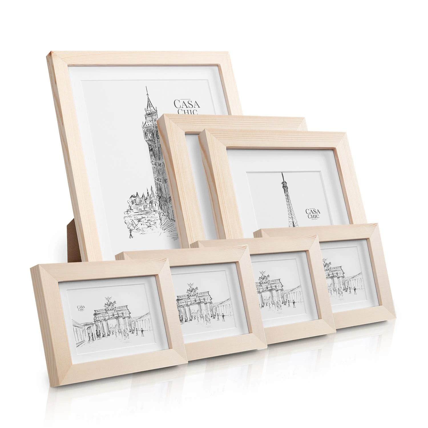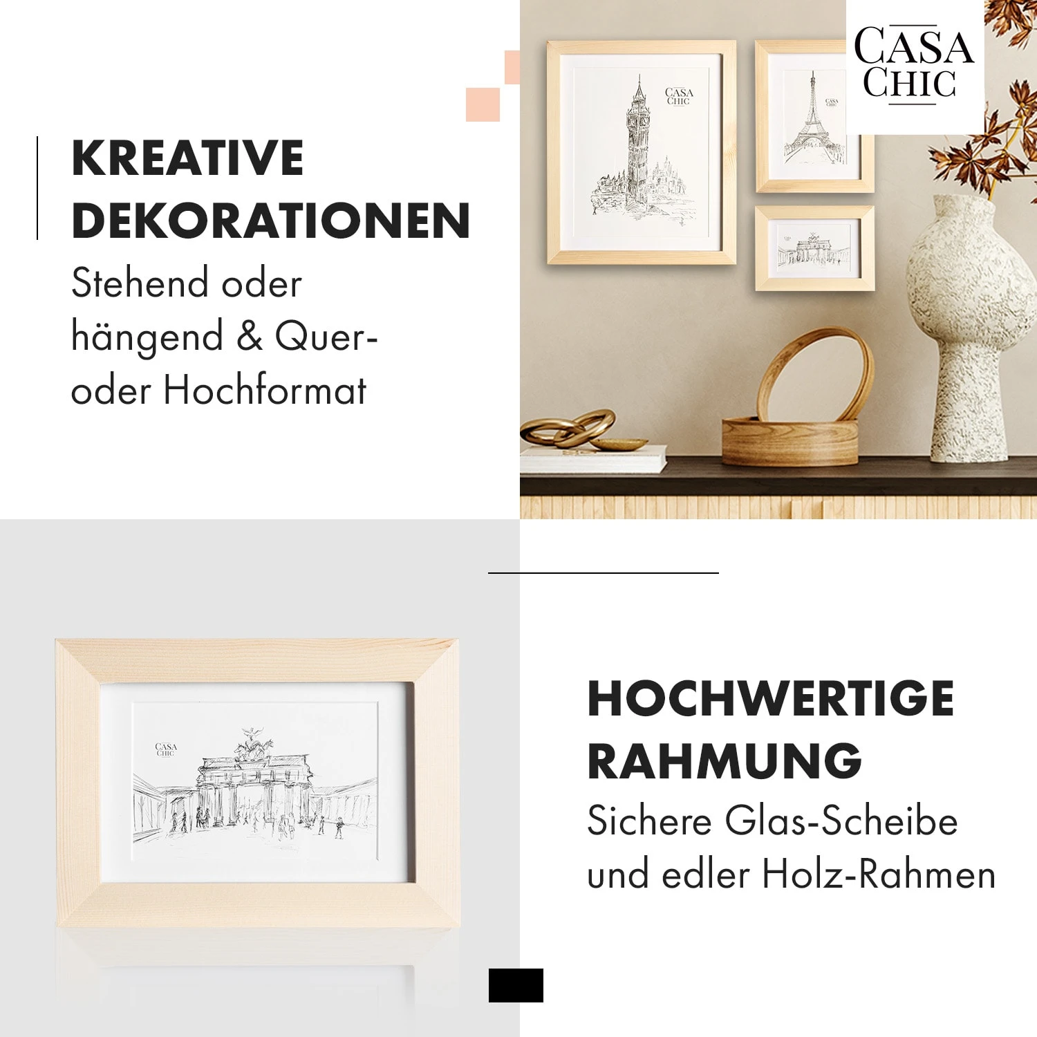 Mit den schlichten Chalcot Echtholz-Bilderrahmen von Casa Chic by blumfeldt kommen deine Fotos und Bilder sowohl im Hoch- als auch im Querformat ideal zur Geltung. Gestalte wunderschöne Wandcollagen, denn der Chalcot kommt direkt als passendes 7er-Set zu dir nach Hause. Die mitgelieferten Passepartouts überlassen dir die Wahl des passenden Bildausschnitts. Sein Rahmenprofil schenkt einen edlen Kontrast und die Frontscheibe aus Echtglas schützt vor Staub und Schmutz.