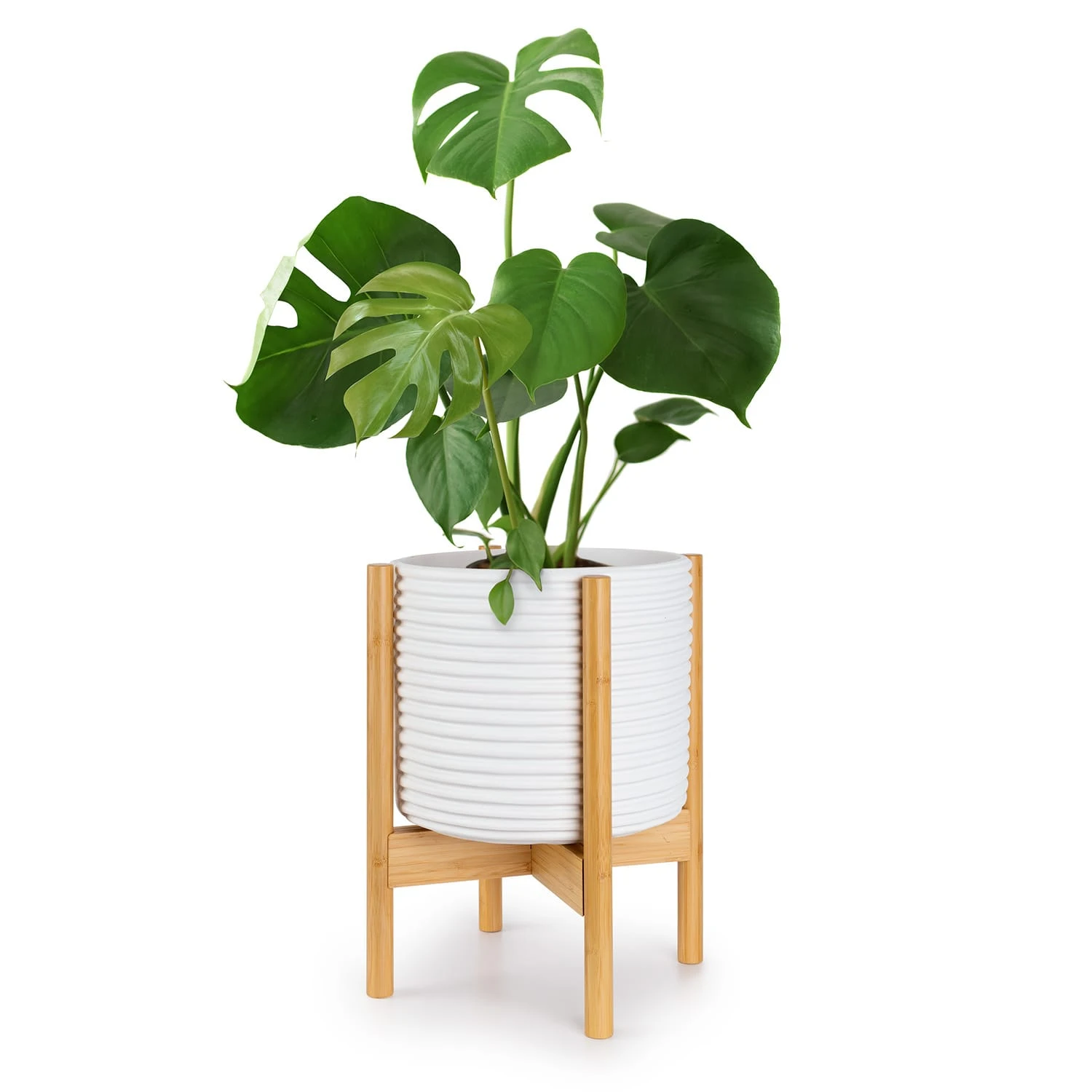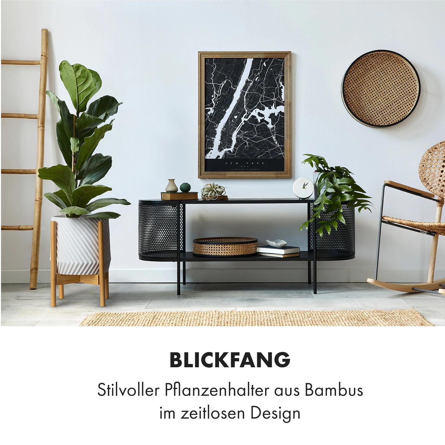 Lass mit dem Deventer Pflanzenhalter von Fox & Fern by blumfeldt mehr Natur bei dir einziehen: Die Blumenständer sind aus nachhaltigem Bambus gefertigt und bringen frische und gute Stimmung in dein Leben. Stelle an deinem erweiterbaren Pflanzendständer einfach den gewünschten Durchmesser deines Blumentopfes zwischen 20,3 und 30,5 cm ein, um deine Lieblingspflanzen bequem darauf zu platzieren. Durch simples Umdrehen des Blumenständers kannst du deine Pflanzenfreunde sogar auf zwei unterschiedlichen Höhen präsentieren. Kombiniere nach Lust und Laune und erschaffe deine private Wohlfühloase bei dir Zuhause. Das praktische Steck-Design ermöglicht zudem eine schnelle und einfache Montage.