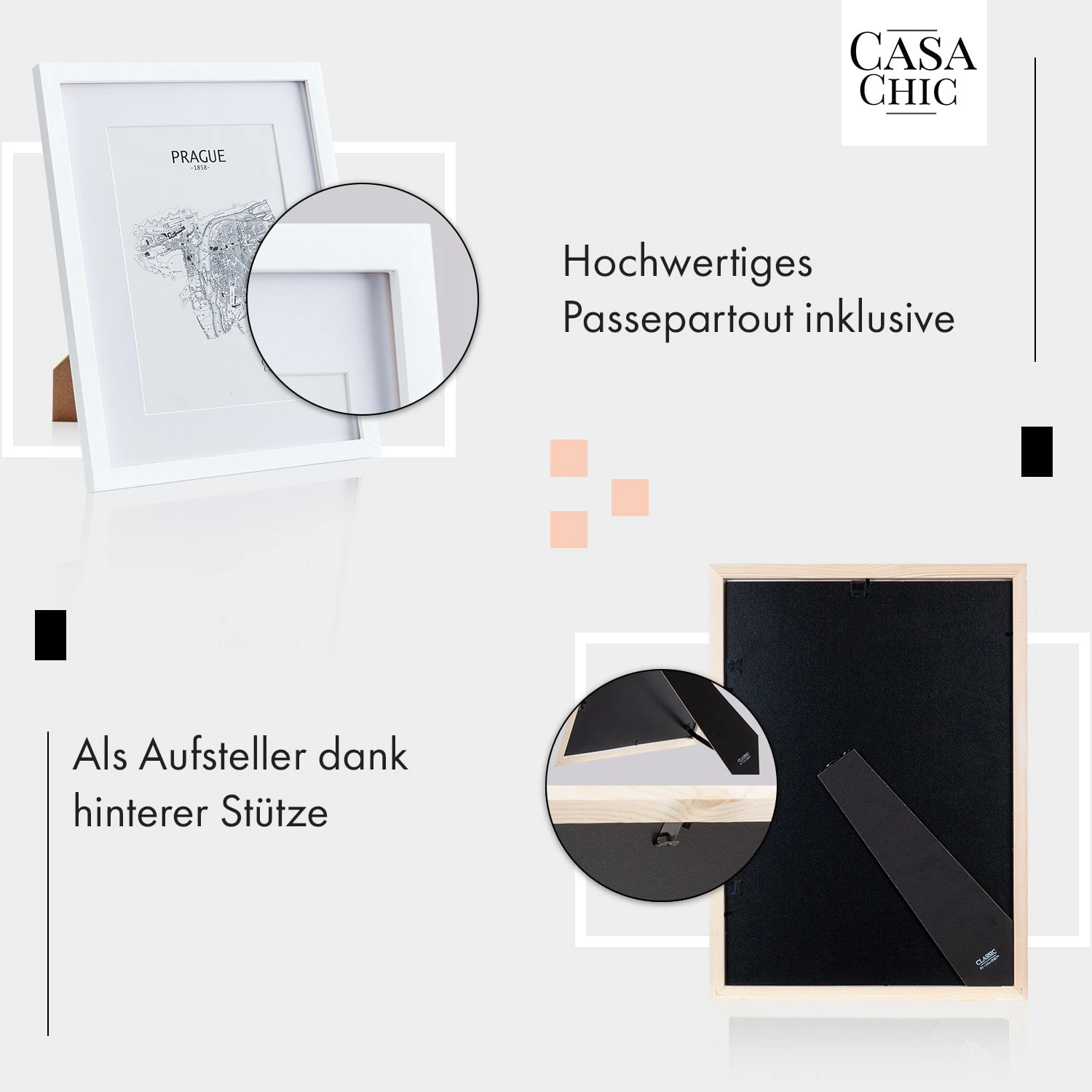 Der ansprechende Everton Bilderrahmen von Casa Chic by blumfeldt aus Echtholz bringt deine Fotos und Bilder sowohl im Hoch- als auch im Querformat ideal zur Geltung. Bleibe flexibel und gestalte wunderschöne Wandcollagen oder arrangiere deine Lieblingsfotos auf dem Sideboard oder im Regal. Das mitgelieferte Passepartout überlässt dir die Wahl des passenden Bildausschnitts. Ein schlichtes Rahmenprofil und die Frontscheibe aus Echtglas sorgen für Eleganz und besten Schutz.