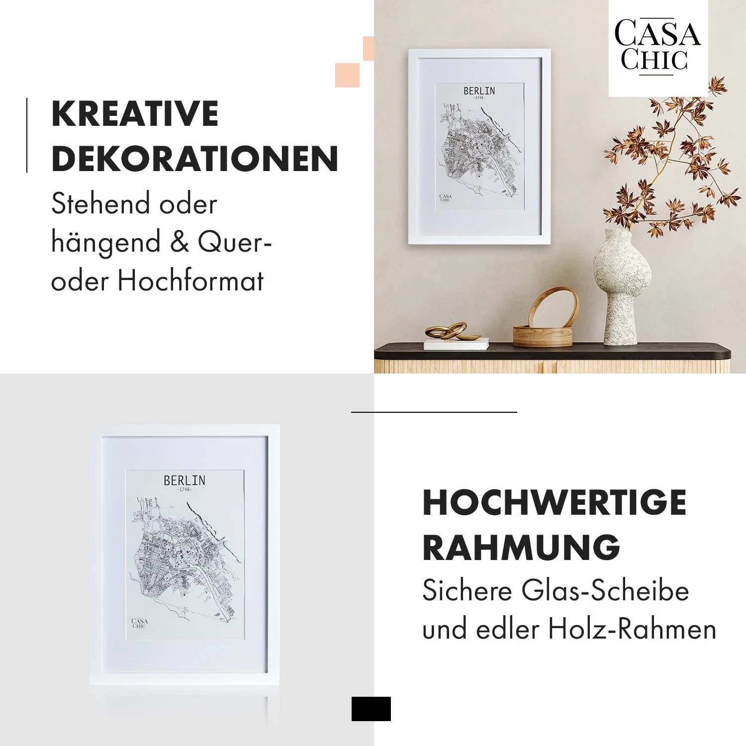 Der ansprechende Everton Bilderrahmen von Casa Chic by blumfeldt aus Echtholz bringt deine DIN-A3 großen Fotos und Bilder sowohl im Hoch- als auch im Querformat ideal zur Geltung. Bleibe flexibel und gestalte wunderschöne Wandcollagen oder arrangiere deine Lieblingsfotos auf dem Sideboard oder im Regal. Das mitgelieferte Passepartout überlässt dir die Wahl des passenden Bildausschnitts im DIN-A4-Format. Ein schlichtes Rahmenprofil und die Frontscheibe aus Acrylglas sorgen für Eleganz und besten Schutz.