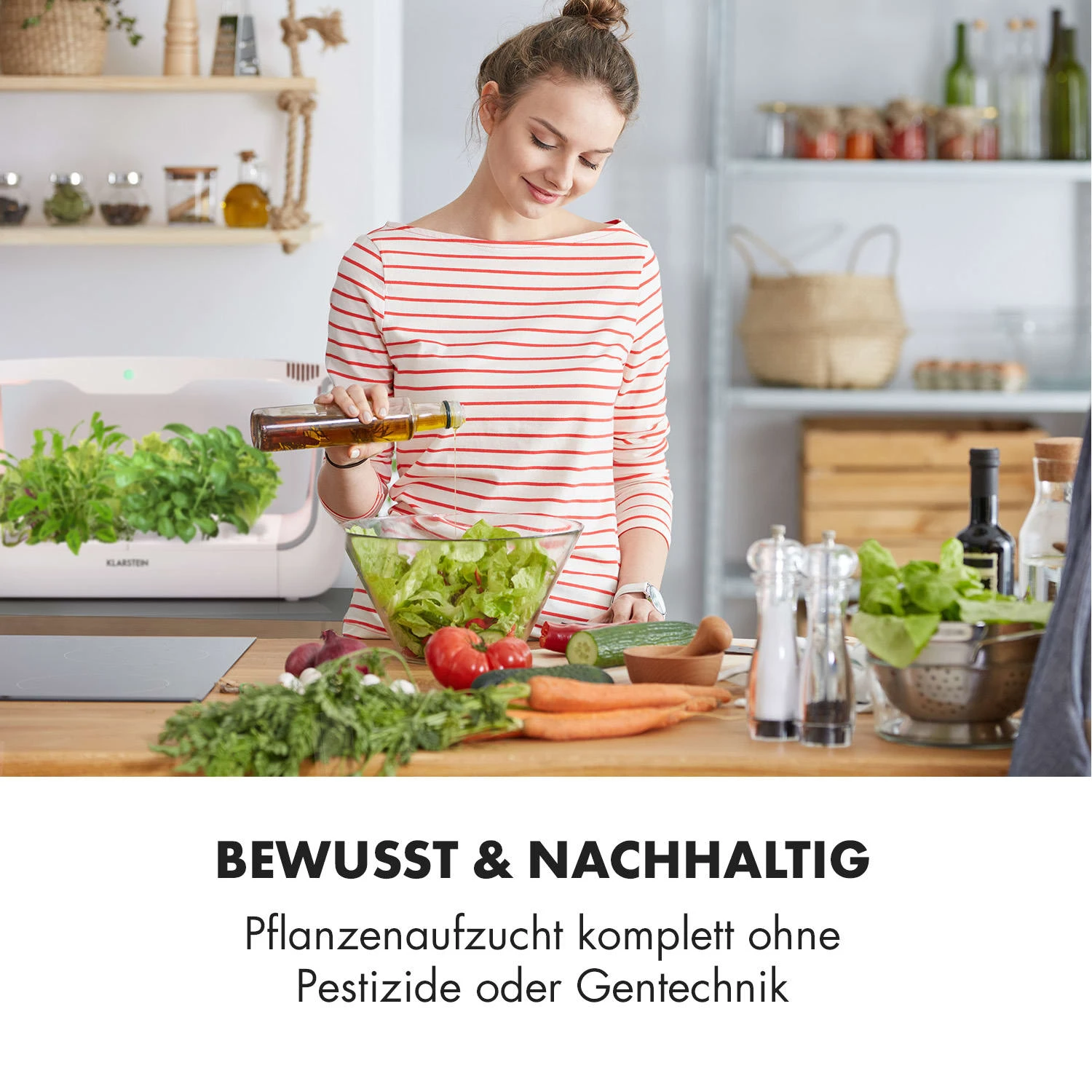 Frisch, nachhaltig und garantiert frei von Pflanzenschutzmitteln: der Klarstein GrowIt Farm Smart Indoor Garden versorgt die Küche das ganze Jahr hindurch mit knackigem Gemüse und würzigen Kräutern.
