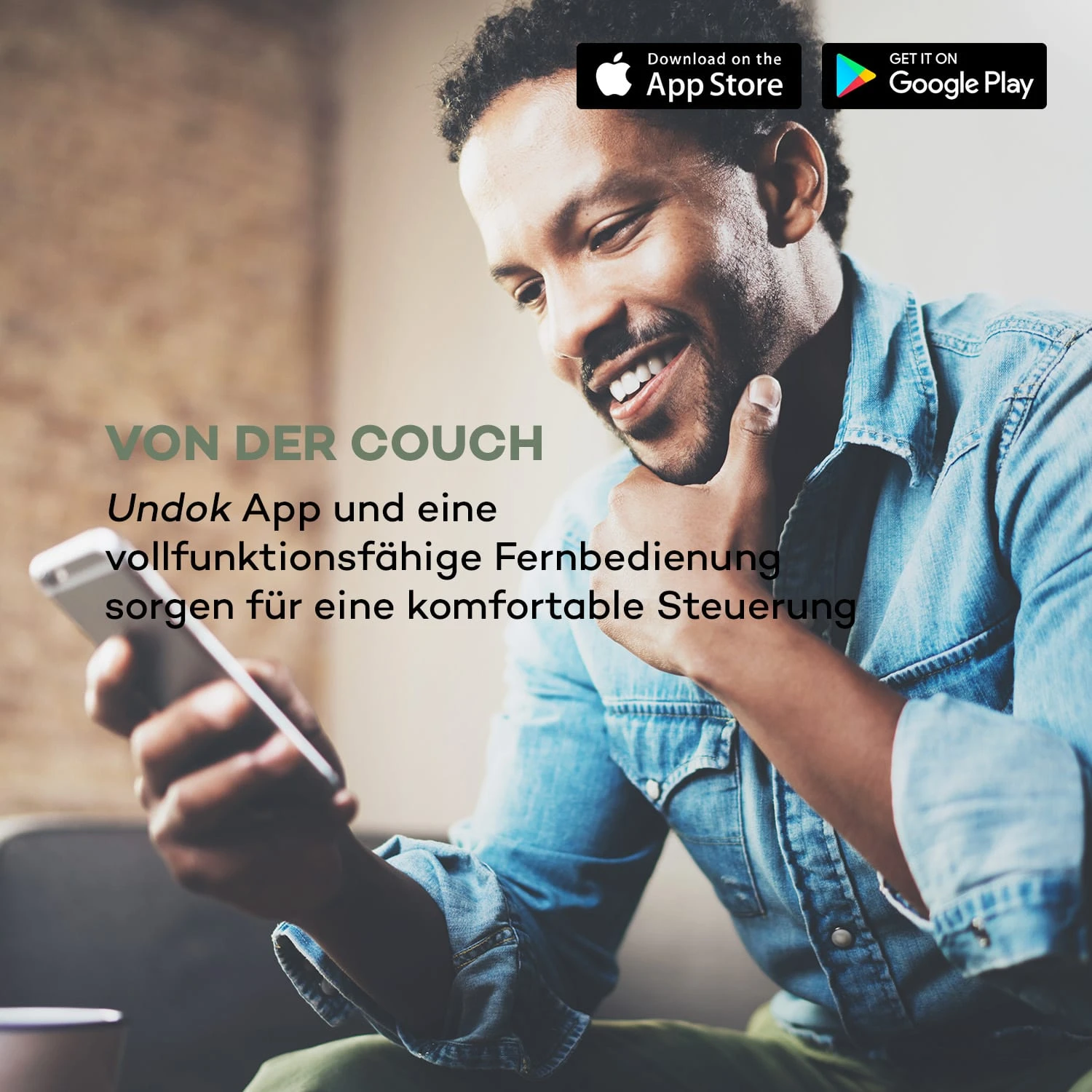 Ein Equalizer mit fünf Presets und die X-Bass-Funktion gehören zu den weiteren Merkmalen der Kompaktanlage. Die Bedienung erfolgt direkt am Gerät, bequem per Fernbedienung oder über WLAN per UNDOK-App von der Couch aus.