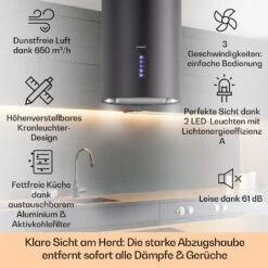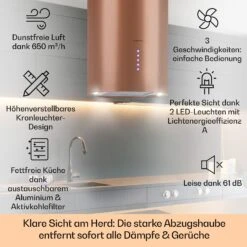 Barett Inselabzugshaube Ø35cm Umluft 558 M³/h LED Aktivkohlefilter