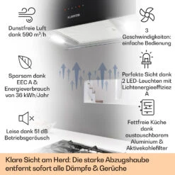 Kronleuchter XL Inselabzugshaube 90cm Umluft 590m³/h LED Touch Schwarz