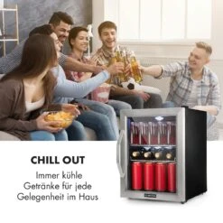 Beersafe XL Kühlschrank 60 Liter 2 Böden Doppelt Isolierte Panoramaglastür Edelstahl
