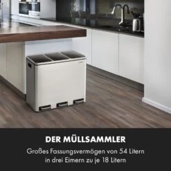 Ordnungshüter 3 Mülleimer Mülltrenner 45L (3 X 15 L) Cremebeige