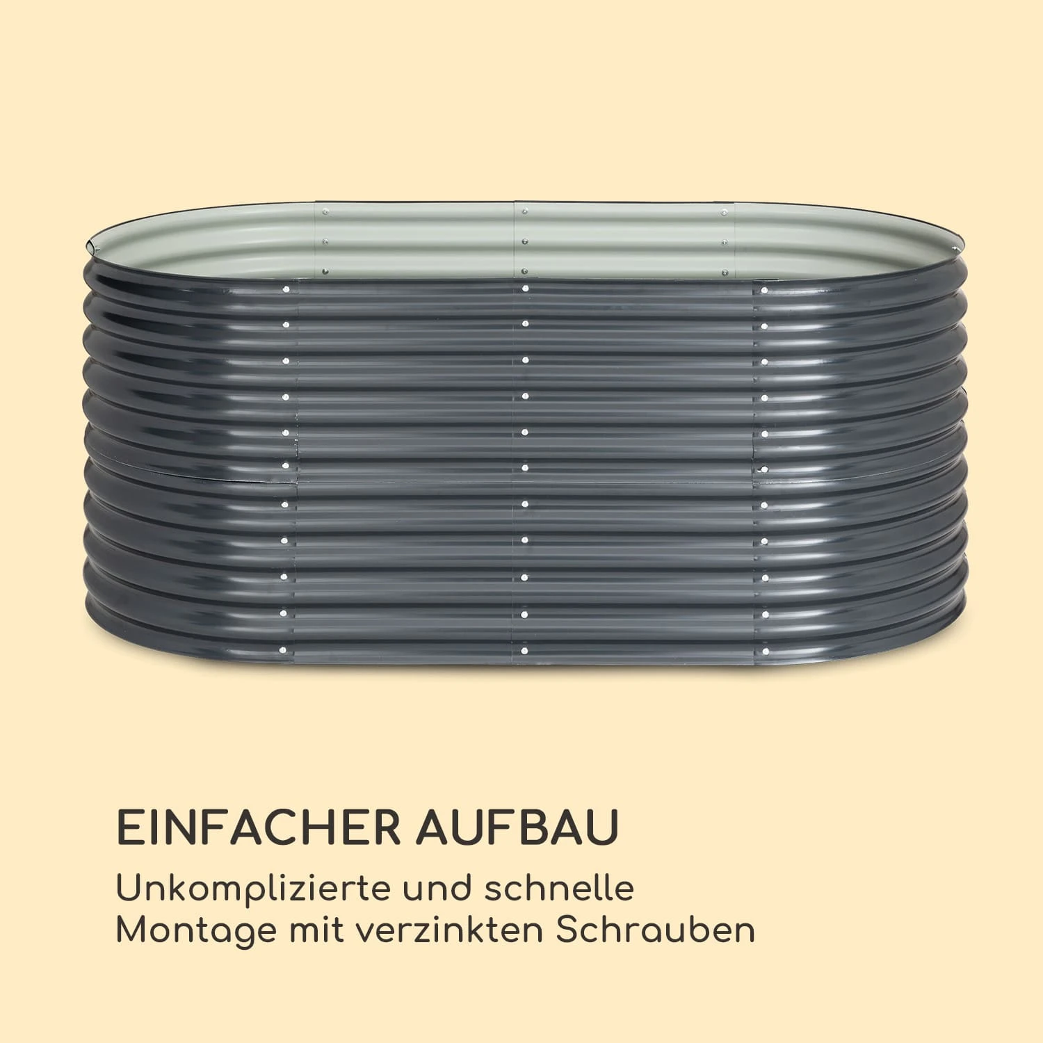 Denn saftige Tomaten, süße Erdbeeren, knackige Zucchini und aromatische Kräuter lassen sich dank optimaler Wachstumsbedingungen spielend leicht heranziehen. Einjährige Pflanzen und alljährige Gärtnerfreuden: Die stabile Rahmenkonstruktion des Gartenbeetes ist aus Stahl-Wellblech und durch eine spezielle Zink-Aluminium-Legierung samt zusätzlicher Pulverbeschichtung sicher gegen Witterungseinflüsse geschützt. So trotzt das High Grow ganzjährig Wind und Wetter.