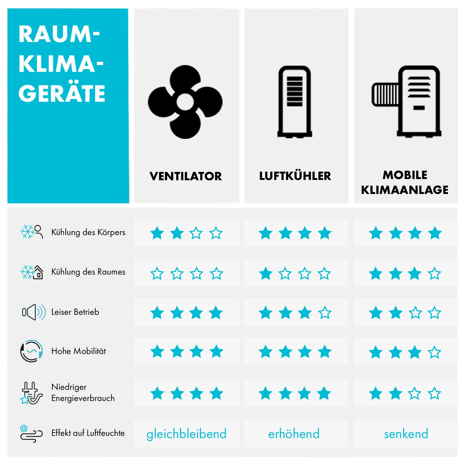 - 4-in-1: Luftkühler, Ventilator, Luftbefeuchter und Luftreiniger