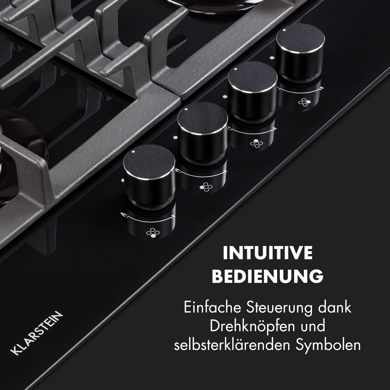 Auf dem geräumigen Kochfeld befinden sich vier hochwertige Sabaf-Brenner, die mit einer Leistung von jeweils einmal 3,6 kW und 1 kW sowie zweimal 1,75 kW ordentlich einheizen. Dabei ist die Bedienung dank der selbsterklärenden Symbole an den großen Drehknöpfen absolut intuitiv, die Hitzezufuhr kann während des Kochvorgangs immer wieder direkt angepasst werden. Zusätzliches Feuer zum Entzünden ist nicht nötig: Die Gasflamme wird einfach per SnapJetIgnition entfacht. Die Brenner verteilen die Hitze gleichmäßig in der Mitte und an den Rändern der Töpfe oder Pfannen, alles wird perfekt gegart. Die beiden abnehmbaren Kreuze aus massivem Gusseisen sind für beinahe alle Arten von Kochgeschirr geeignet und sitzen passgenau und kippsicher über den Flammen.