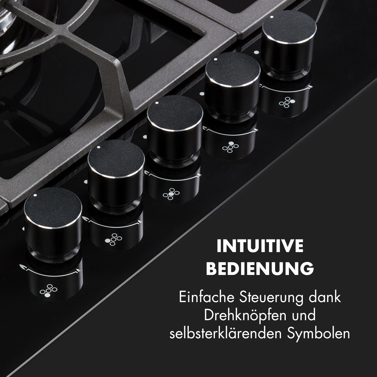 Auf dem geräumigen Kochfeld befinden sich fünf hochwertige Sabaf-Brenner, die mit einer Leistung von jeweils einmal 3,6 kW, 3,0 kW und 1 kW sowie zweimal 1,75 kW ordentlich einheizen. Da es sich hierbei um unterschiedliche Brenner-Größen handelt, ist das Ignito 5 Zonen Gaskochfeld für jede erdenkliche Mahlzeit geeignet. Dabei ist die Bedienung dank der selbsterklärenden Symbole an den großen Drehknöpfen absolut intuitiv, die Hitzezufuhr kann während des Kochvorgangs immer wieder direkt angepasst werden. Zusätzliches Feuer zum Entzünden ist nicht nötig: Die Gasflamme wird einfach per SnapJetIgnition entfacht. Die Brenner verteilen die Hitze gleichmäßig in der Mitte und an den Rändern der Töpfe oder Pfannen, alles wird perfekt gegart. Die drei abnehmbaren Kreuze aus massivem Gusseisen sind für beinahe alle Arten von Kochgeschirr geeignet und sitzen passgenau und kippsicher über den Flammen. Ein zusätzlicher Aufsatzring kann beim Kochen mit einem Wok verwendet werden und leistet hervorragende Arbeit.