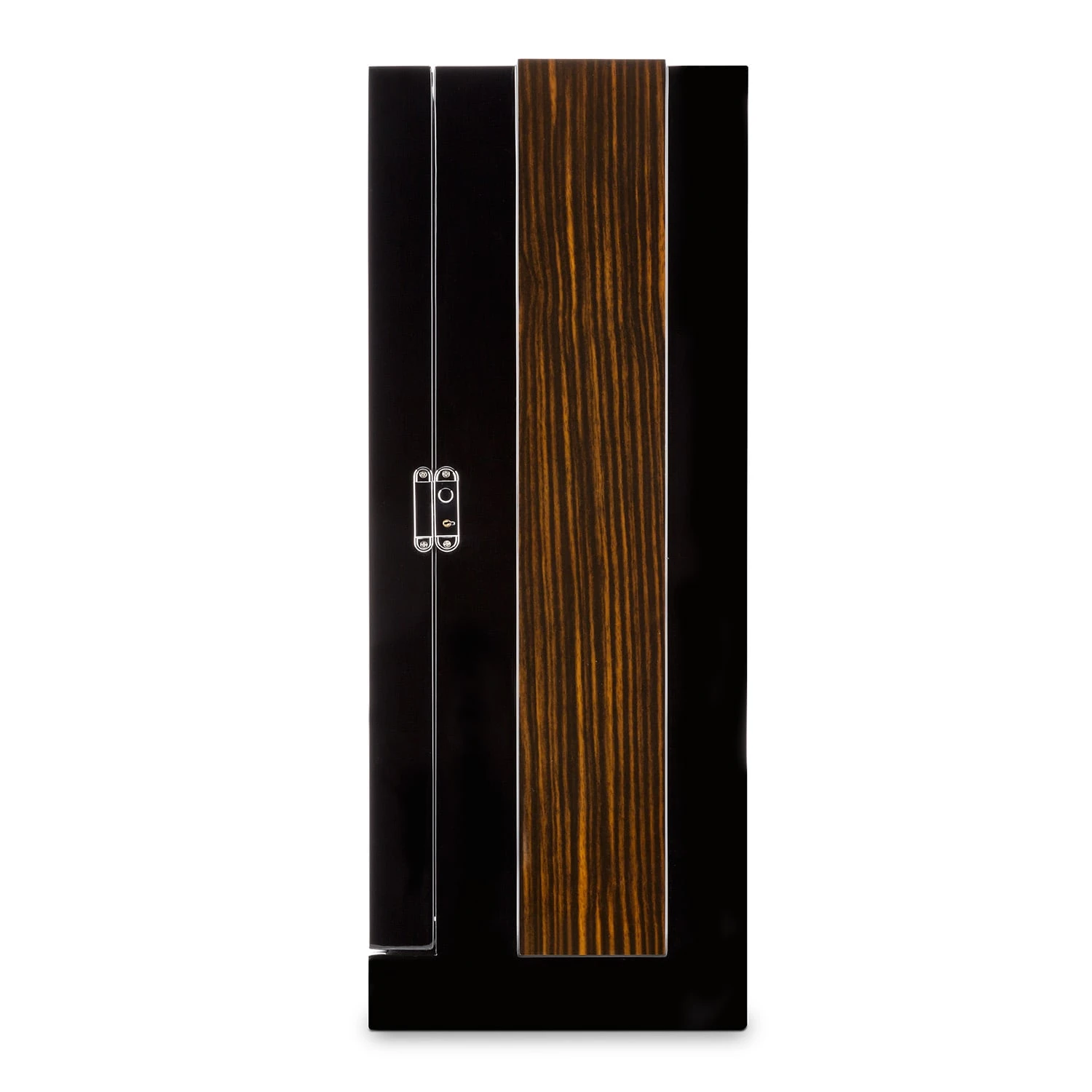 Der luxuriöse, schwarze Schaukasten des Klarstein KlagenfurtUhrenbewegers wartet mit zwölf Aufnahmen mit jeweils einem schwarzen Kissen auf, und setzt jede Uhr elegant in Szene. Das Schaumstoffmaterial stellt sicher, dass sowohl Chronometer mit langem als auch kurzem Armband festen Sitz finden. Die ebenfalls schwarze Samibespannung des Inneren vervollständigt den edlen Gesamteindruck. Eine Kunststofftür schützt die wertvollen Zeitmesser vor Staub und Schmutz, während eine einschaltbare, blaue LED-Beleuchtung für einen guten Einblick ins Innere sorgt. Zwei einfach verständliche, digitale Touch-Displays mit jeweils 6 Tastfeldern dient der separaten Steuerung der zwölf Rotatoren. So lassen sich für jede Aufnahme einzeln Rechts-, Links- oder Rechts-Links-Lauf sowie die gewünschten Umdrehungen pro Tag – bis 2200 – einstellen.