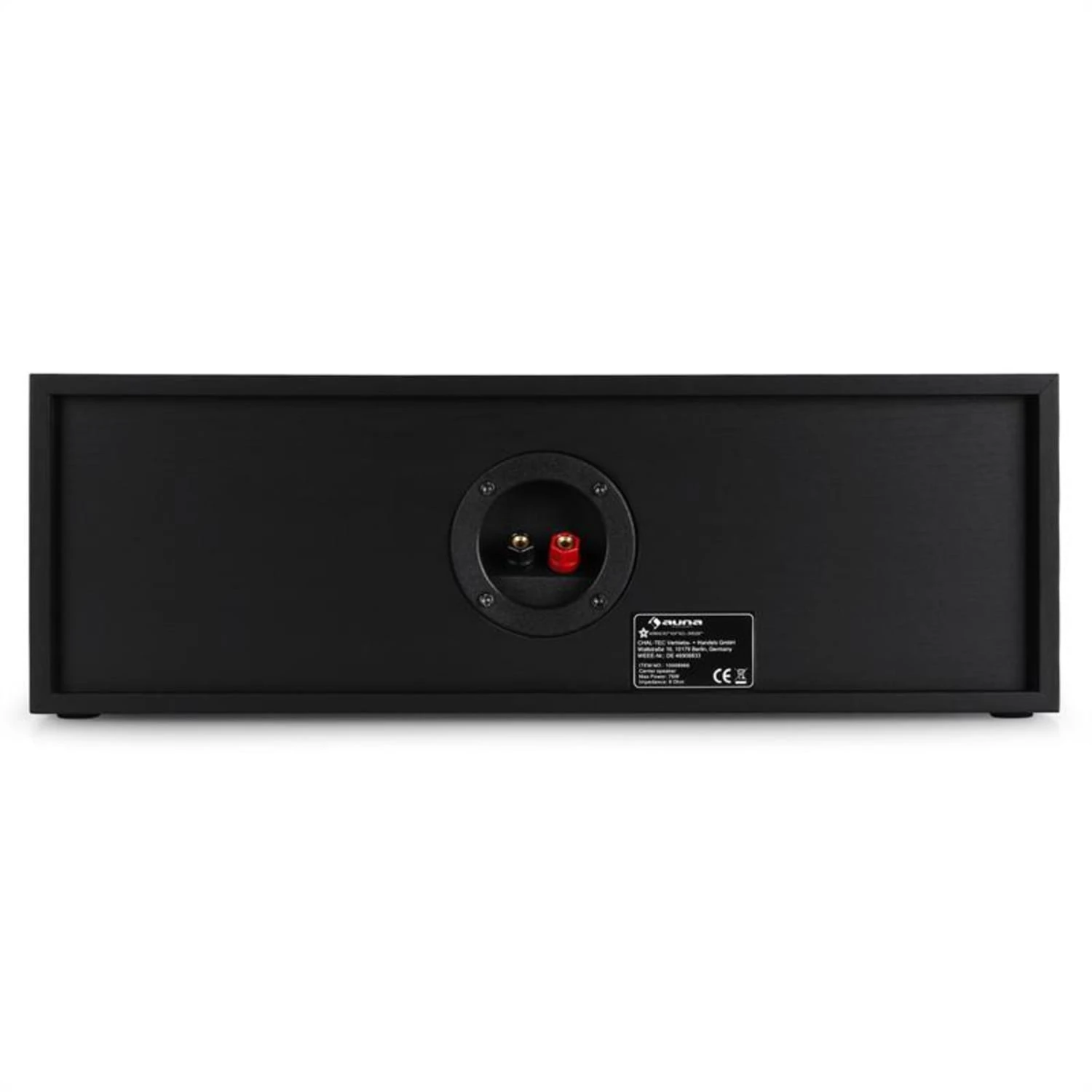 Für ein harmonisches Zusammenspiel mit der Wohneinrichtung schmückt sich der auna Centerlautsprecher mit einer eleganten Formensprache, einem schwarzes Gehäuse-Finish sowie abnehmbarer Lautsprecherabdeckung.