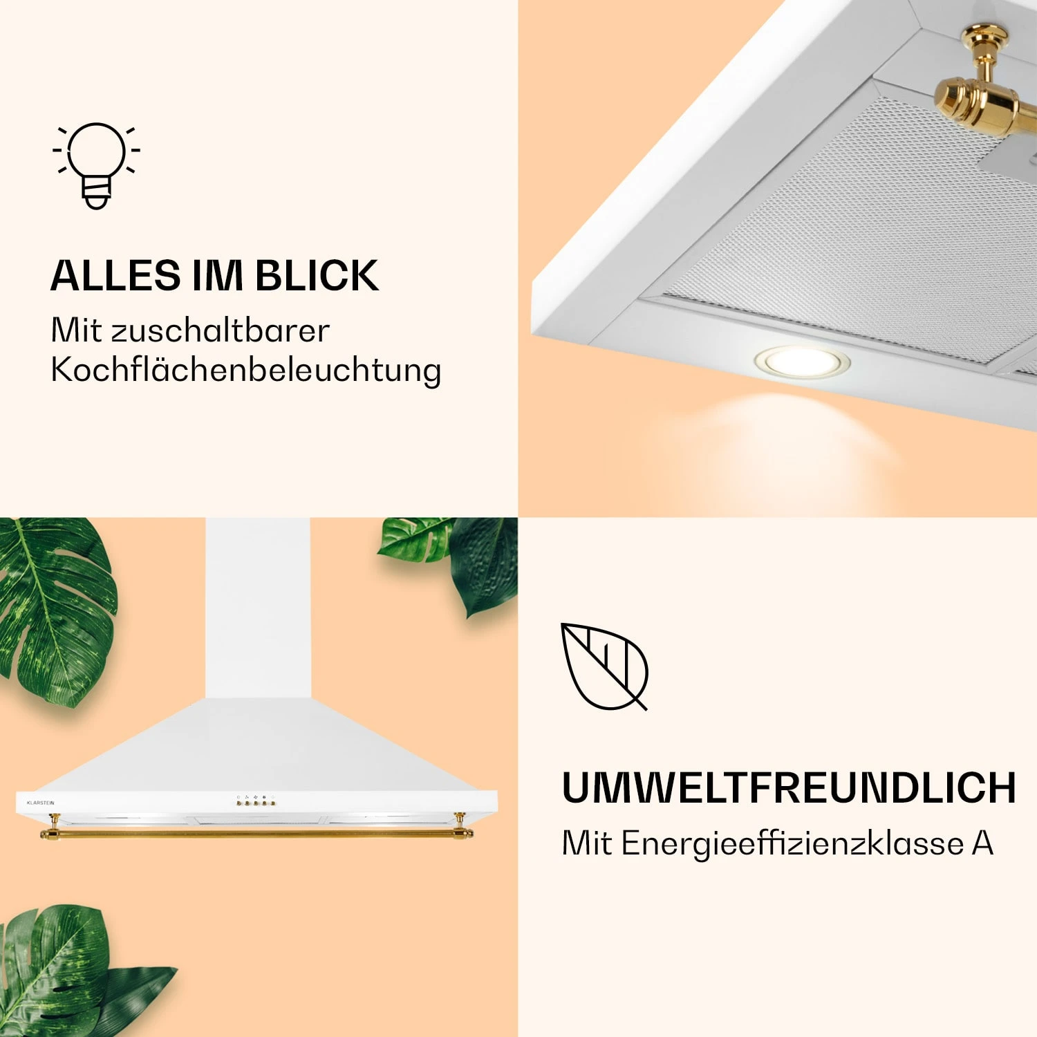 Die Klarstein Montblanc 90 Wandabzugshaube ist der Höhepunkt in Technik und Design: Kraftvoll beseitigt sie Dunst und verleiht deiner Küche einen eleganten Blickfang.