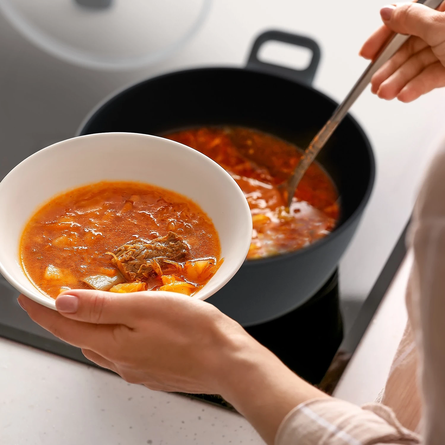 - Fassungsvermögen 16 cm Kasserolle: 1,2 Liter
