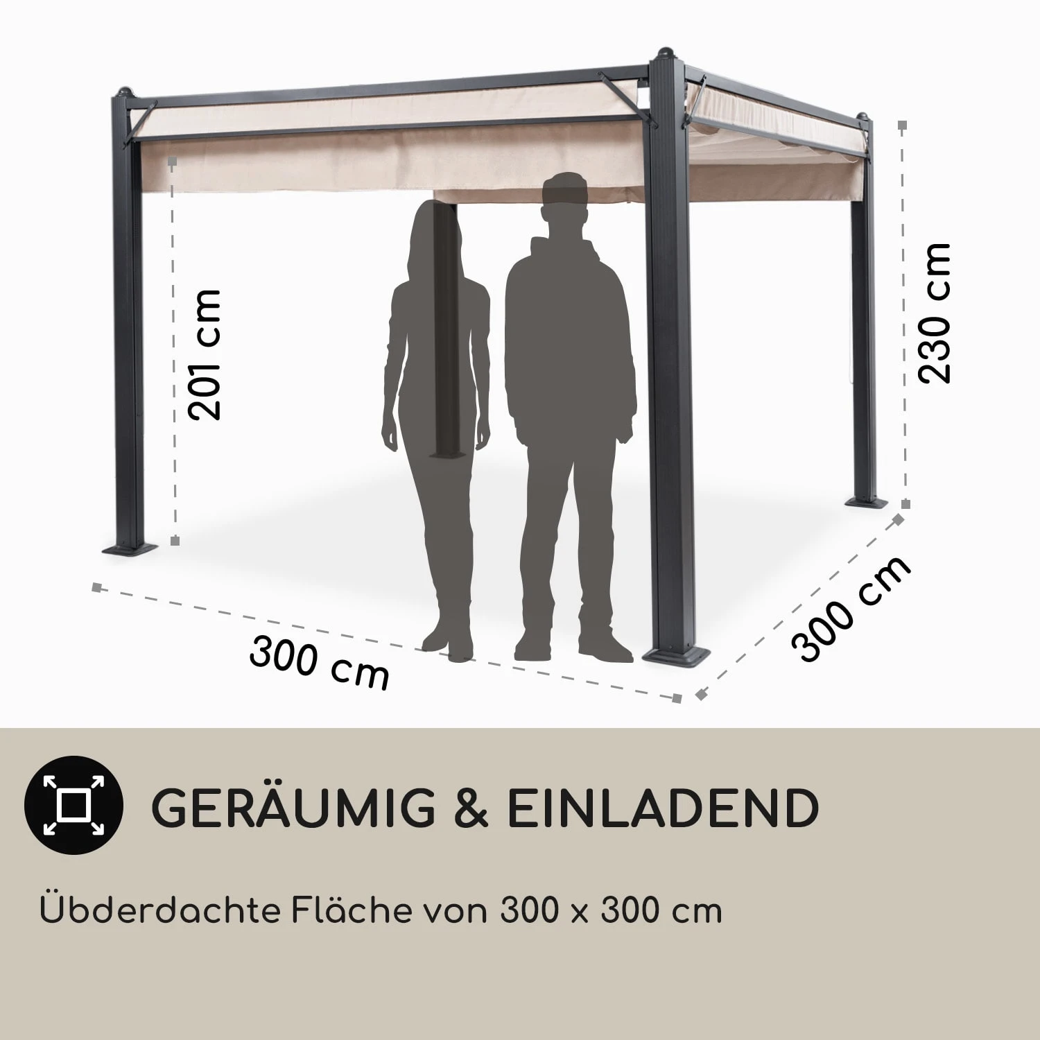 - Maße: ca. 300 x 230 x 300 cm (BxHxT)