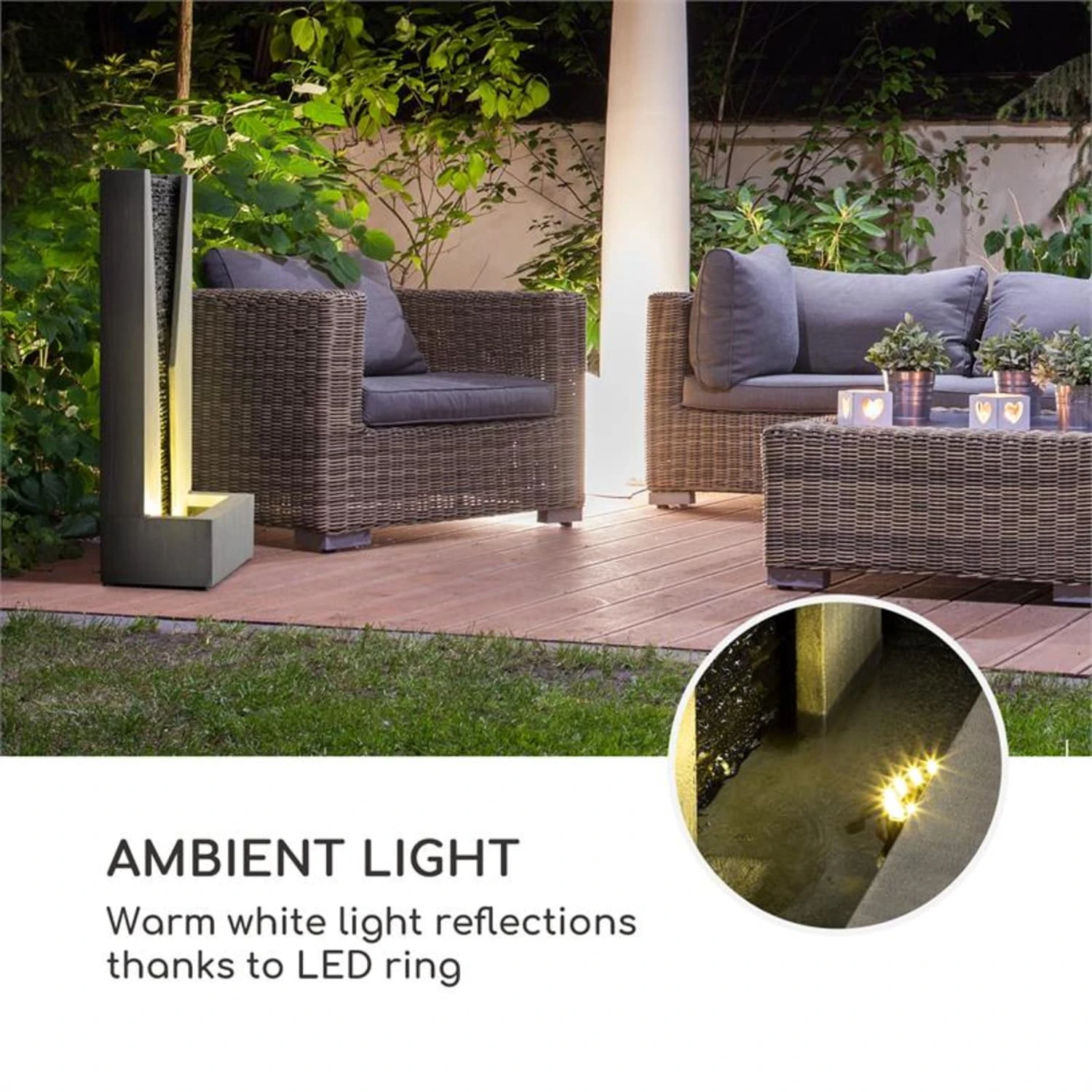- plätscherndes Wasserspiel mit hohem Entspannungseffekt