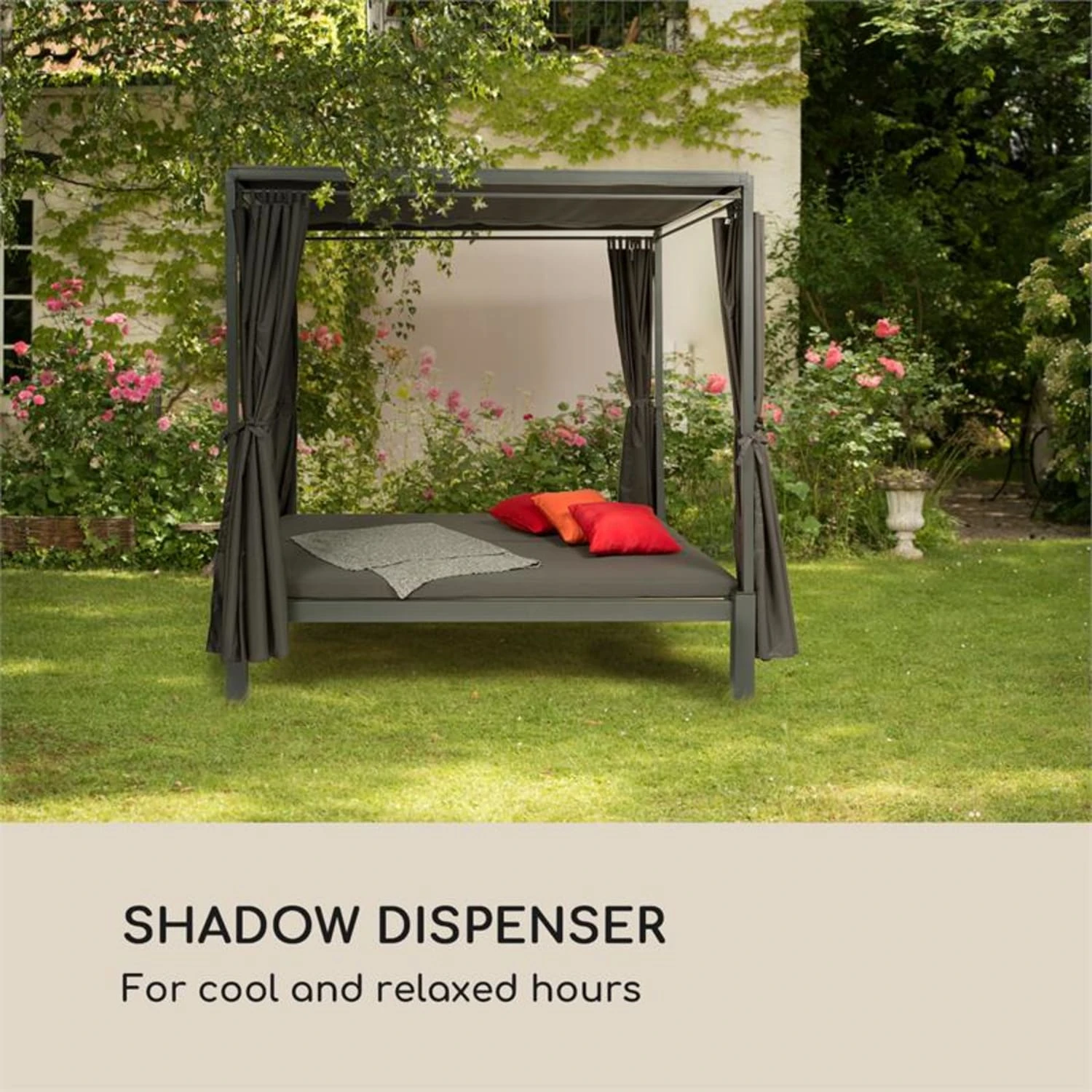 Vor allem an sonnigen Tagen, lassen sich unter dem Schutz viele entspannte Stunden im Schatten verbringen. Dank der wasserdichten Beschichtung weist die Oberfläche Wassertropfen außerdem zuverlässig ab.Natürlich lässt sich das Dach bei Bedarf auch ganz einfach waschen.