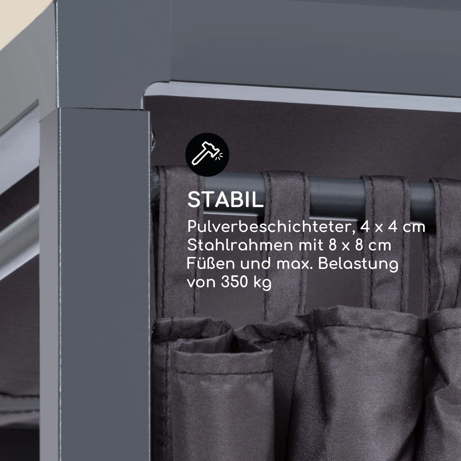 - Material Vorhänge / Dach / Bezüge: 100 % Polyester
