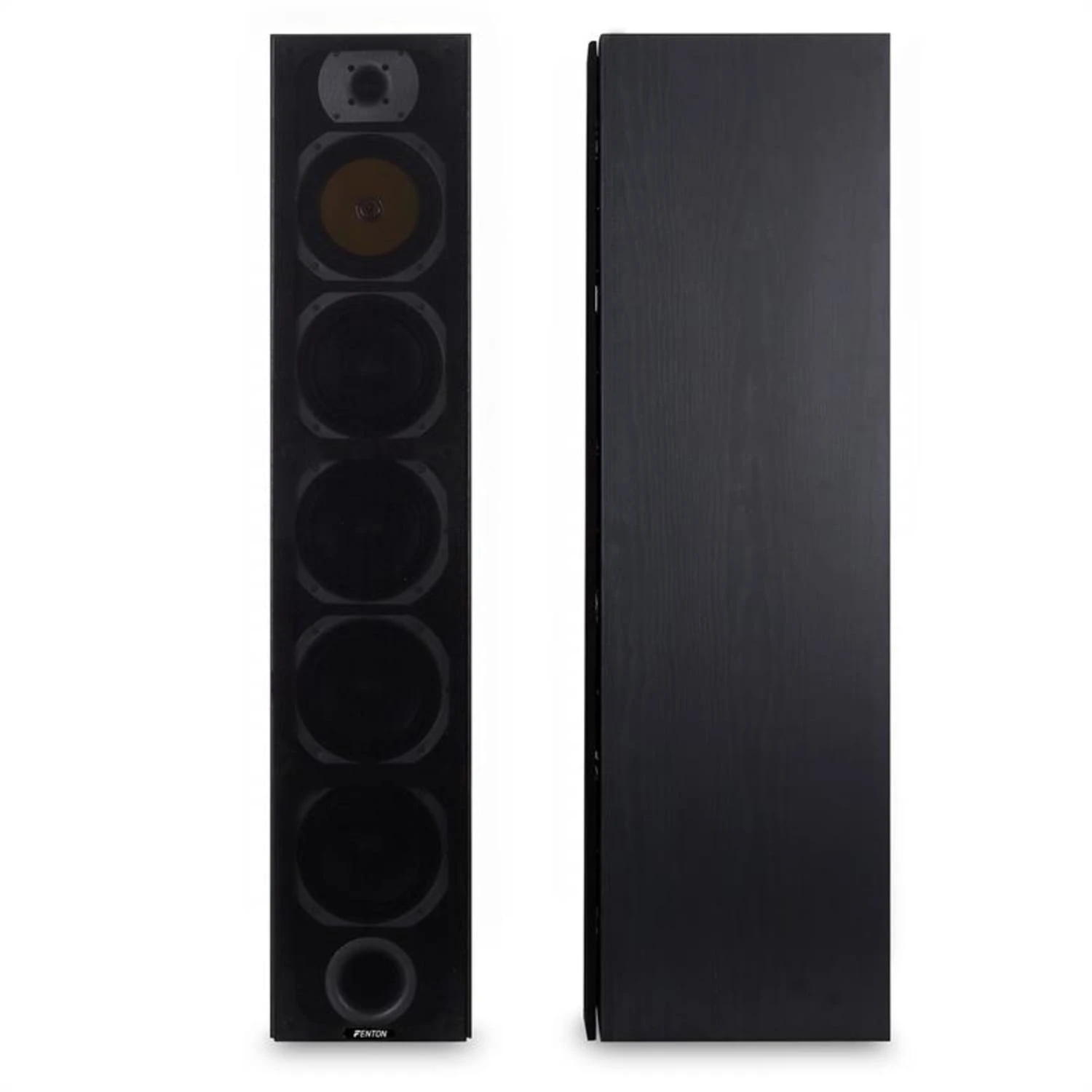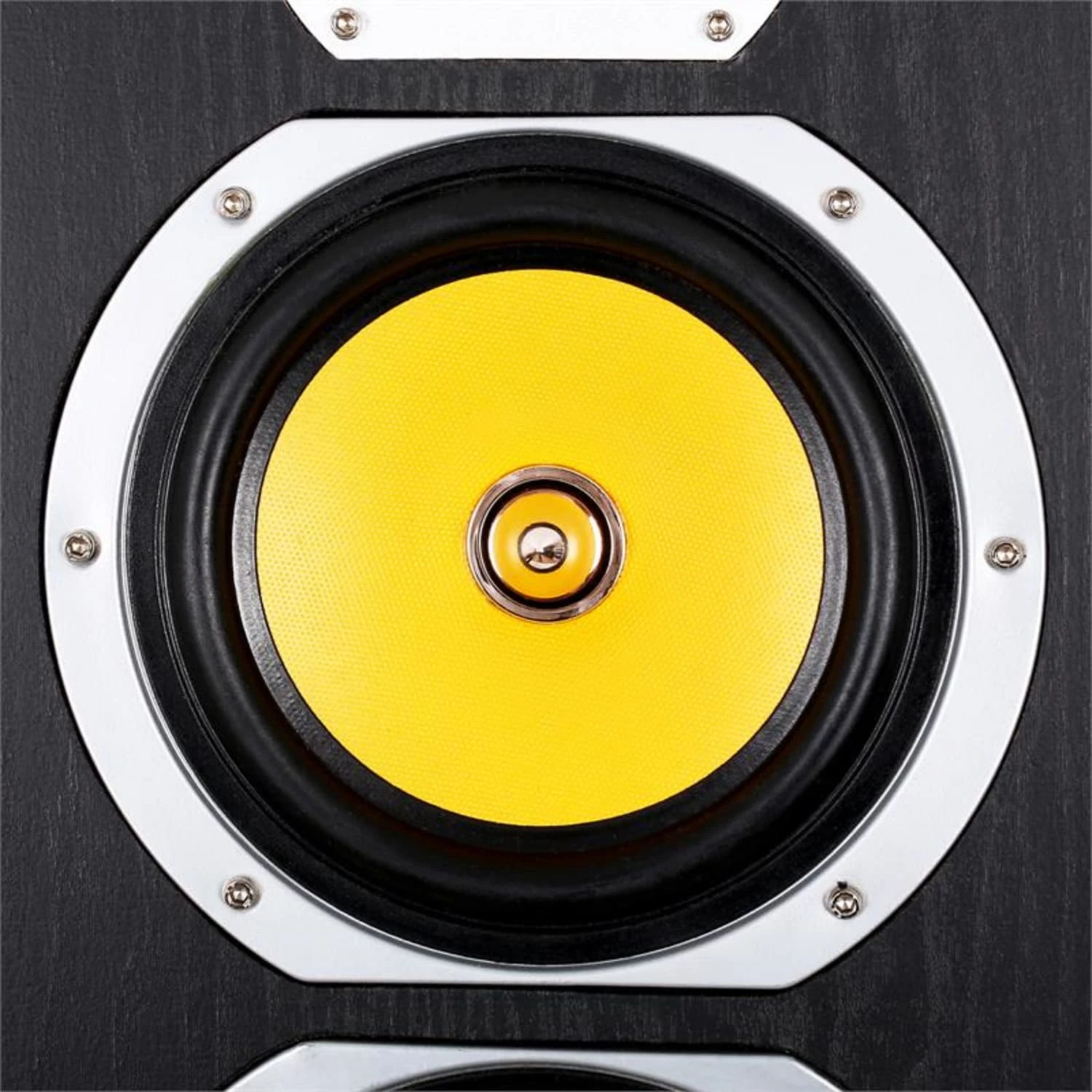 Die Skytronic SHFT57B sind ein Paar Standlautsprecher, die auf 4 Wegen einen 2 x 600W max. starken Klang in die Umgebung schicken. Drei 16cm-(6,5″)-Tieftöner sorgen dabei für eine volle und abgerundete Basswiedergabe, die vom resonanzarmen Holzchassis noch unterstützt wird.