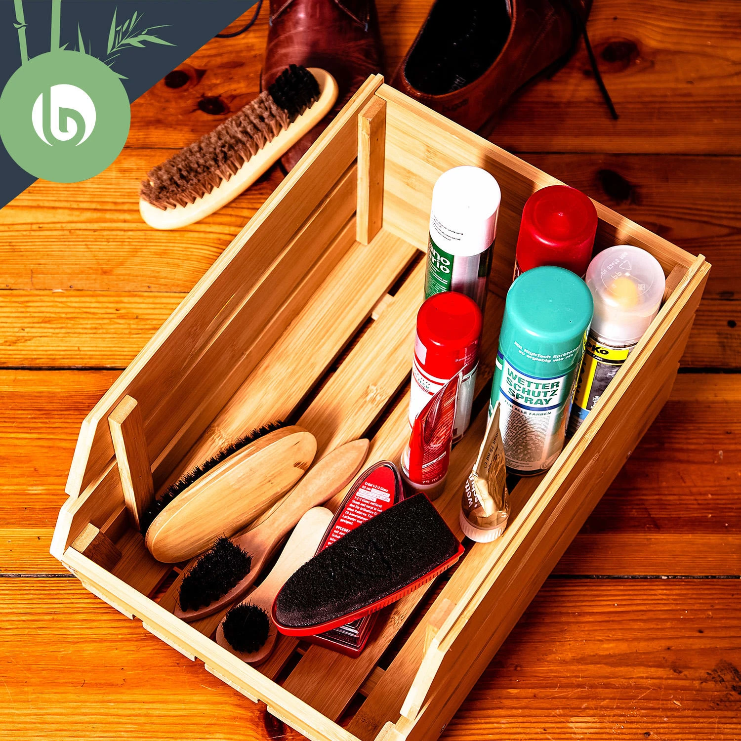 Ob Obst, Spielzeug, Werkzeug oder andere Gegenstände: In der blumfeldt Stapelkiste aus Bambus ist alles stilvoll verstaut und trotzdem gut im Blickfeld. Überzeuge dich auch von der praktischen Steckfunktion und baue dir ein kleines Regal aus diesen edlen Kisten.