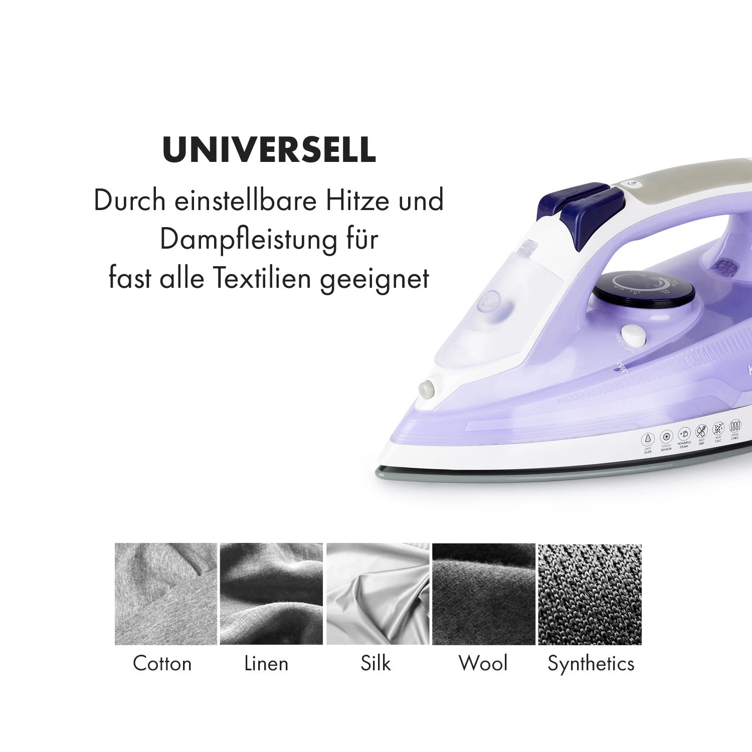 Glauben Sie nicht? Dann wird es Zeit das Klarstein Steam Bro Dampfbügeleisen zu testen, denn gebügelte Wäsche lässt uns nicht nur gepflegter aussehen, das heiße Plätten der Textilfasern verschließt die Poren des Kleidungsstücks und bewirkt so, dass Schmutz viel langsamer eindringen und sich festsetzen kann. Darüber hinaus werden durch die Hitze Keime und Bakterien im Stoff abgetötet: Sauberer, gesünder und ordentlicher – wer möchte das nicht für seine Kleidung und Heimtextilien? Damit das auch mit möglichst wenig Aufwand bewerkstelligt wird, hat das Klarstein Steam Bro Dampfbügeleisen 2200 Watt Heizleistung zum schnellen und kraftvollen Plätten. Dank EasyGlide Bügelplatte aus Nano-Keramik schwebt es förmlich über die Textilien hinweg. Da Hitze nicht alles ist, steht für noch bessere Bügelergebnisse die Dampffunktion parat. Die sorgt für kontinuierliche 20 bis 30 g Dampfausstoß in der Minute und beseitigt Trockenknitter im Bügelschwung. Für ganz hartnäckige Fälle kann ein kraftvoller Dampfstoß den Stoff mit 150 bis 180 g Dampf je Minute durchdringen. Aber auch für empfindliche Textilien, die nicht direkt mit Dampf gebügelt werden dürfen, hat der Steam Bro eine Funktion parat: Per Sprühstoß mit tropffreiem AntiDrip wird der Stoff leicht angefeuchtet und danach heiß trocken gebügelt.