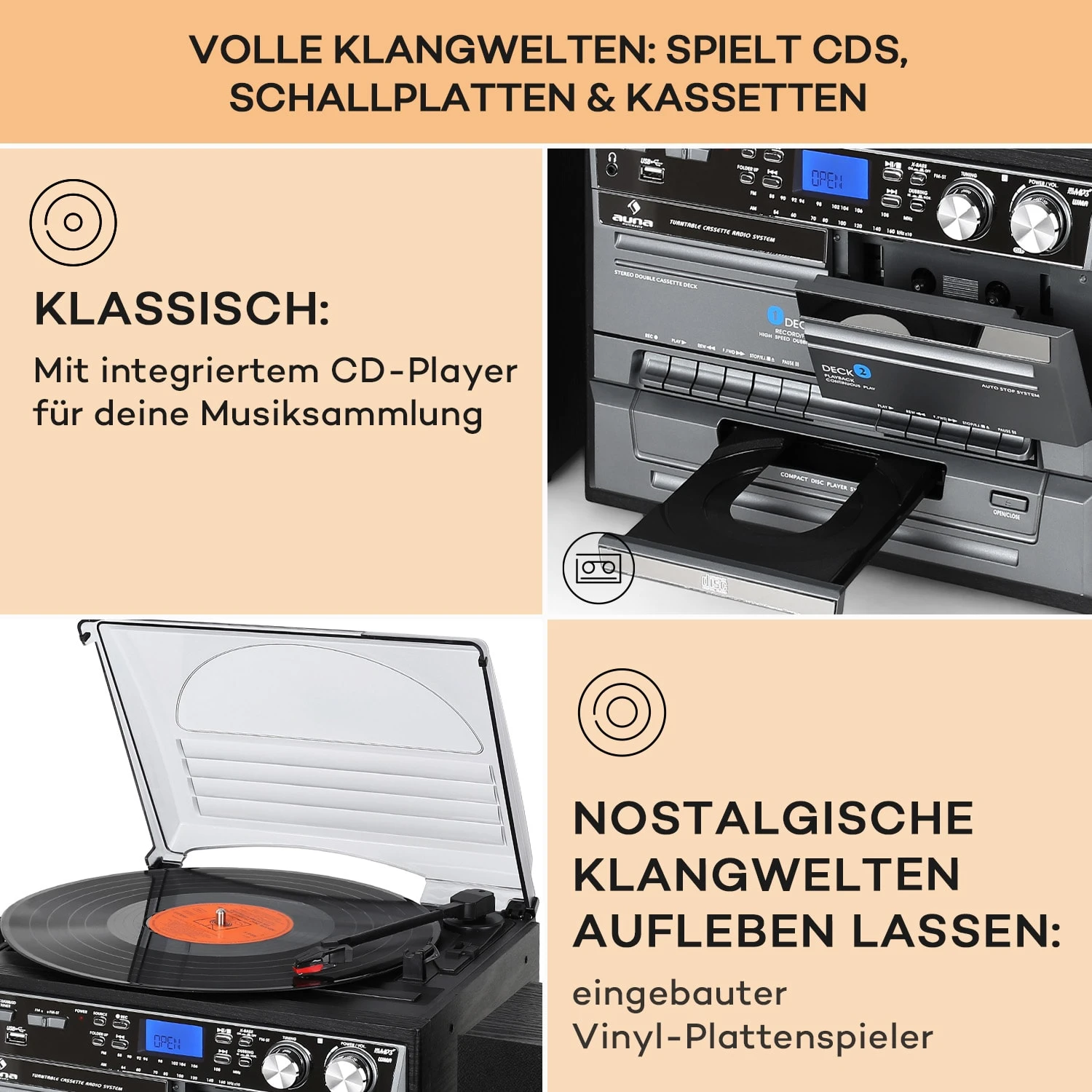 Als als multifunktionale Wohnzimmer-Anlage bringt die auna TC-386 moderne und betagte Medien zusammen und gefällt mir ihrer schönen, bodenständigen Holzmaserung.