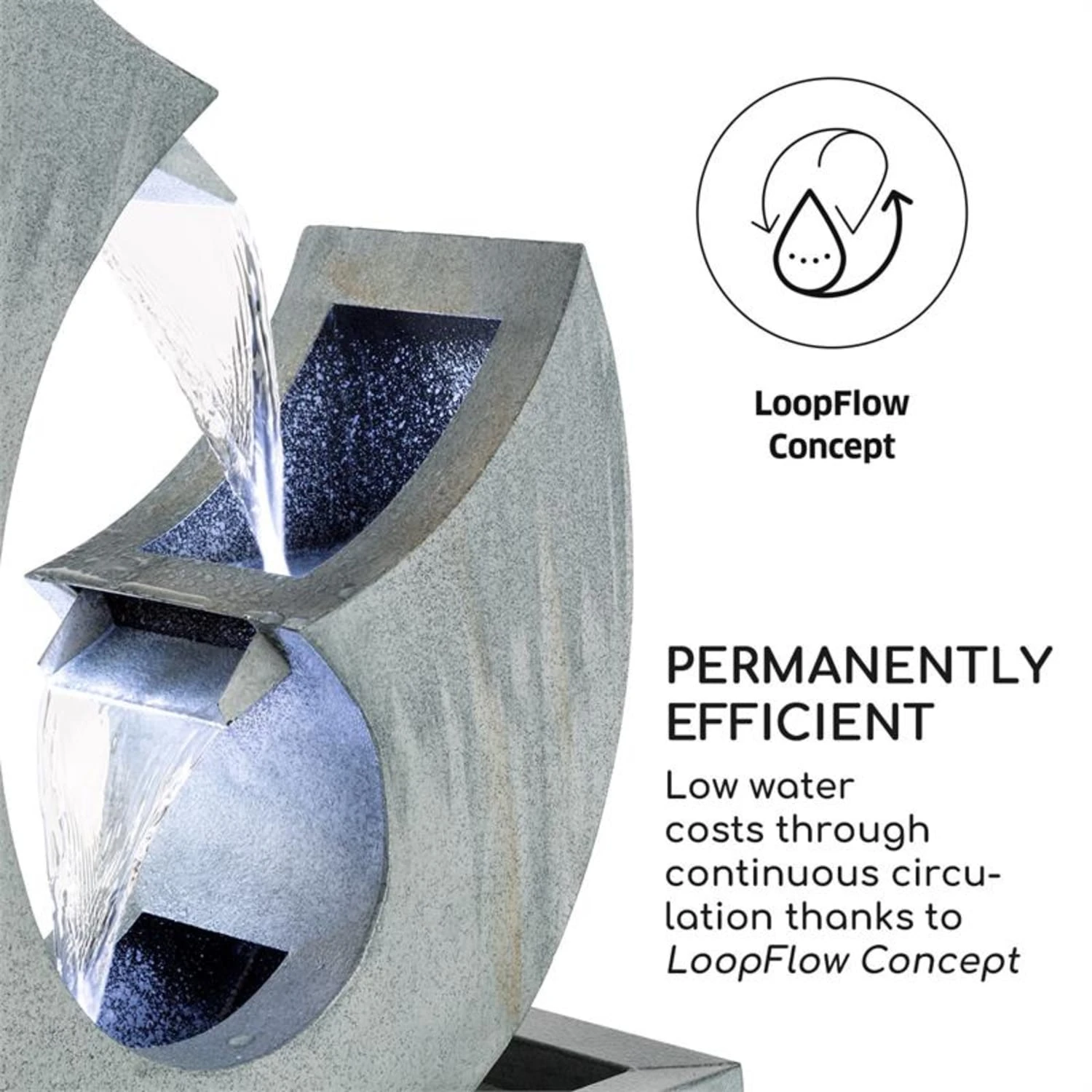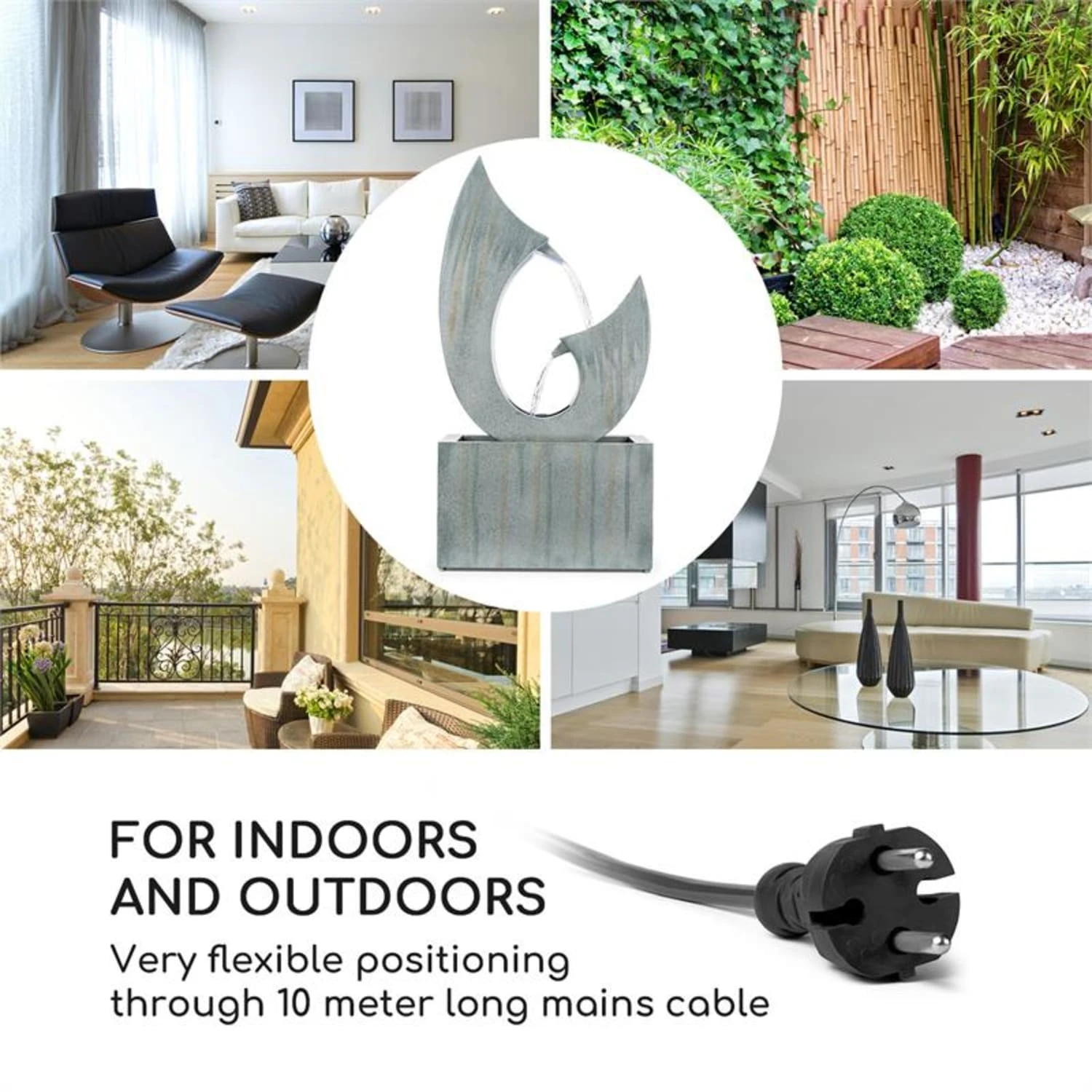 Damit sich das Wasserspiel niemals erschöpft, wird es von einer 8 Watt starken Pumpe in stetigem Umlauf gehalten. Dank seines extralangen 10 m Netzkabels lässt sich der Gartenbrunnen zudem ausgesprochen frei platzieren und findet überall einen perfekten Platz.