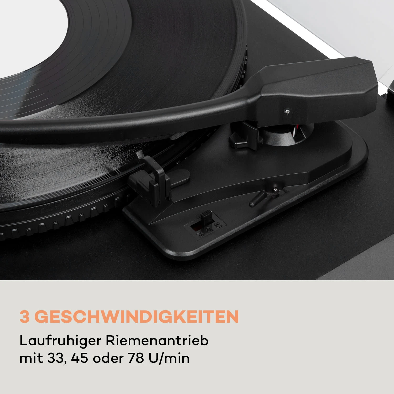 - Abspielgeschwindigkeiten: 33 / 45 / 78 U/min