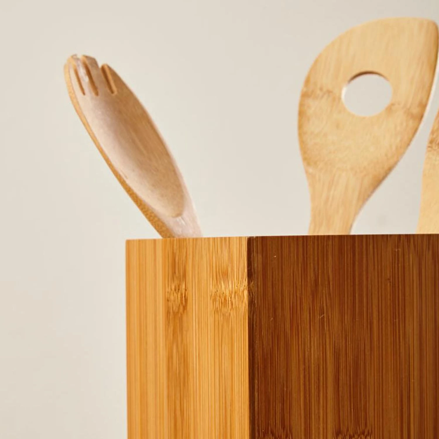 Ob Salatbesteck, Küchenmesser, Schneebesen oder Kochlöffel: Mit dem Utensilienhalter von Klarstein findet jedes Kücheninstrument seinen Platz. In der quadratischen Box sind deine Küchengeräte nicht nur gut aufgehoben, sondern durch das feuchtigkeitsresistente Bambus auch bestens geschützt. Erlebe schöne Ordnung in deiner Küche und maximalen Komfort: Mit der Küchenbox aus Bambus von Klarstein hast du beim Kochen jedes Utensil schnell zur Hand.