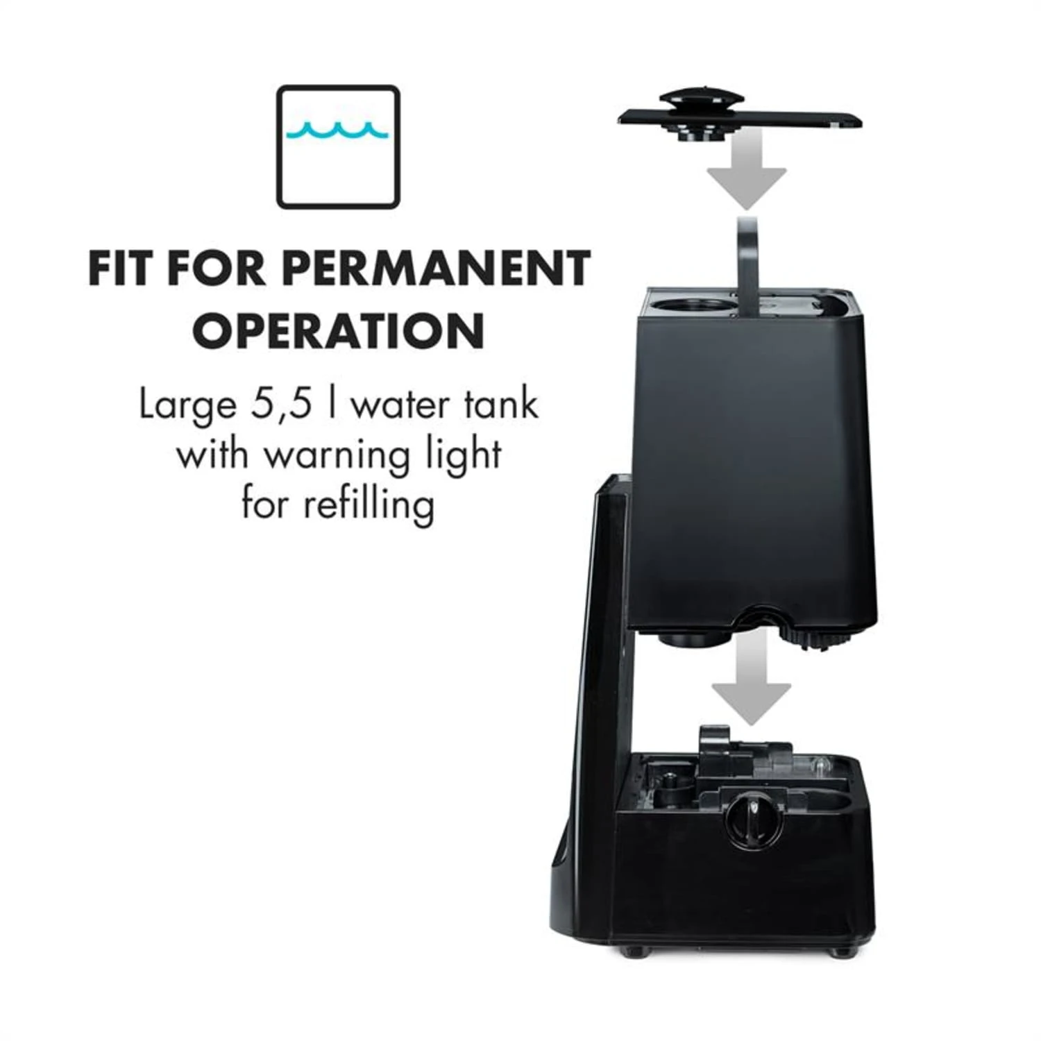 - Autoabschaltung bei niedrigem Wasserstand oder abgenommenem Wassertank