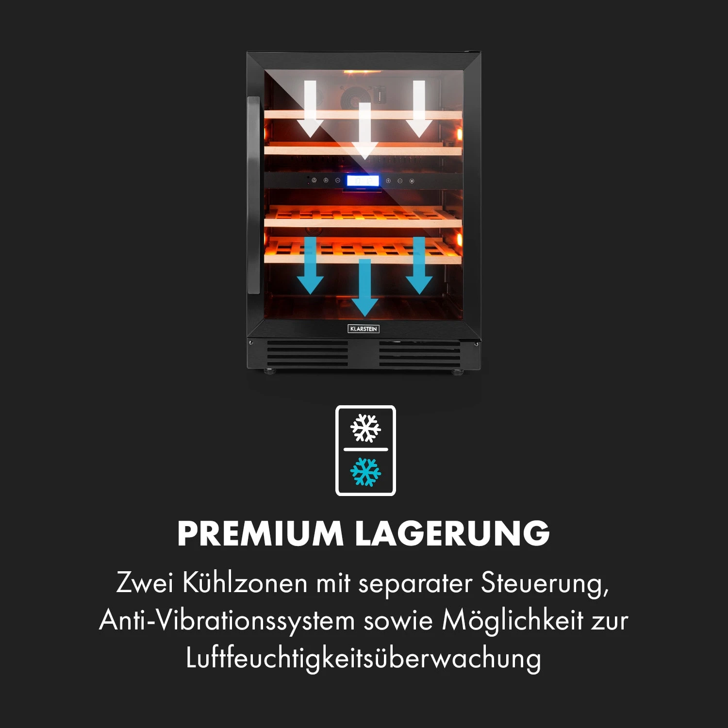 Weinlagerung der Extraklasse: Der Doppelzonen-Weinkühlschrank Vinovilla 43 Built-In Duo Onyx Edition von Klarstein ist ein stilvoller Lagerort und schenkt Weinen die ideale Trinktemperatur.