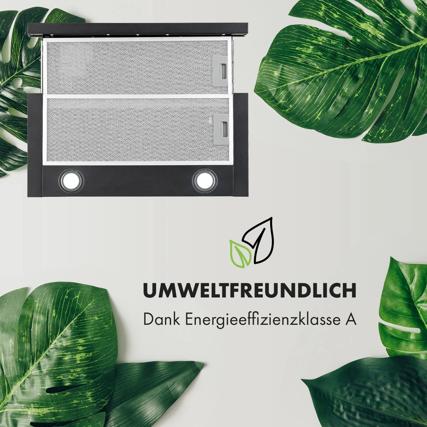 Mit zwei Leistungsstufen kann ihre Arbeitsleistung unkompliziert an das Kochgeschehen angepasst werden. Auf höchster Leistungsstufe befördert sie bis zu 612 m³/h Abluft aus deiner Küche. Zwei zuschaltbare LED-Kochflächenlampen ermöglichen jederzeit den ungetrübten Blick in deine Pfannen und Töpfe.