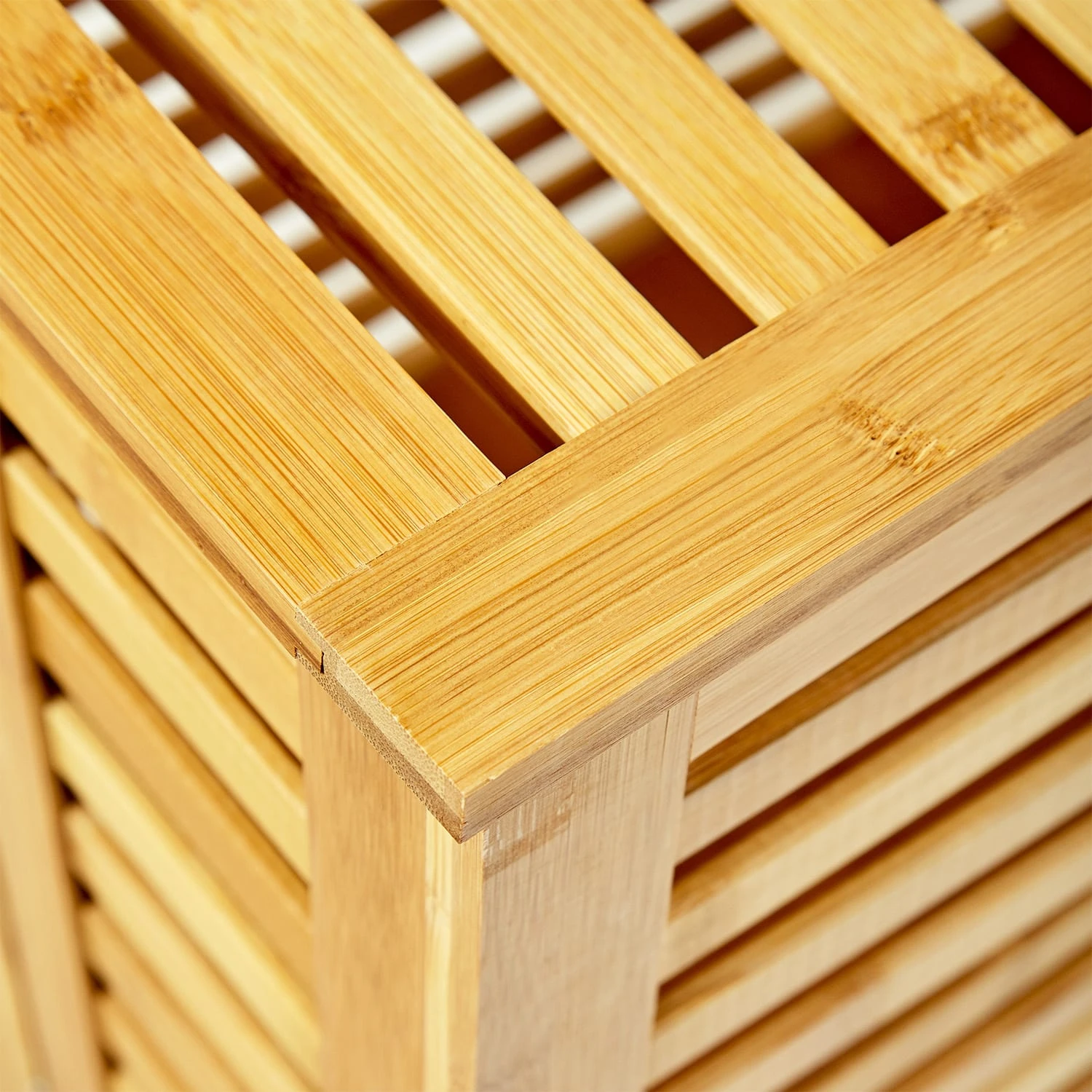 Keine Lust mehr auf Wäschechaos im Bad, im Schlafzimmer oder Kinderzimmer? Unsere blumfeldt Wäschetruhe sorgt im Handumdrehen für Ordnung und ist ganz nebenbei noch ein echter Blickfang. Der stylische Wäschekorb mit praktischen Lüftungsschlitzen ist komplett aus Bambus gefertigt. Durch seinen klappbaren Deckel kannst du ihn auch ideal als Ablagefläche für Handtücher oder frische Kleidung nutzen.