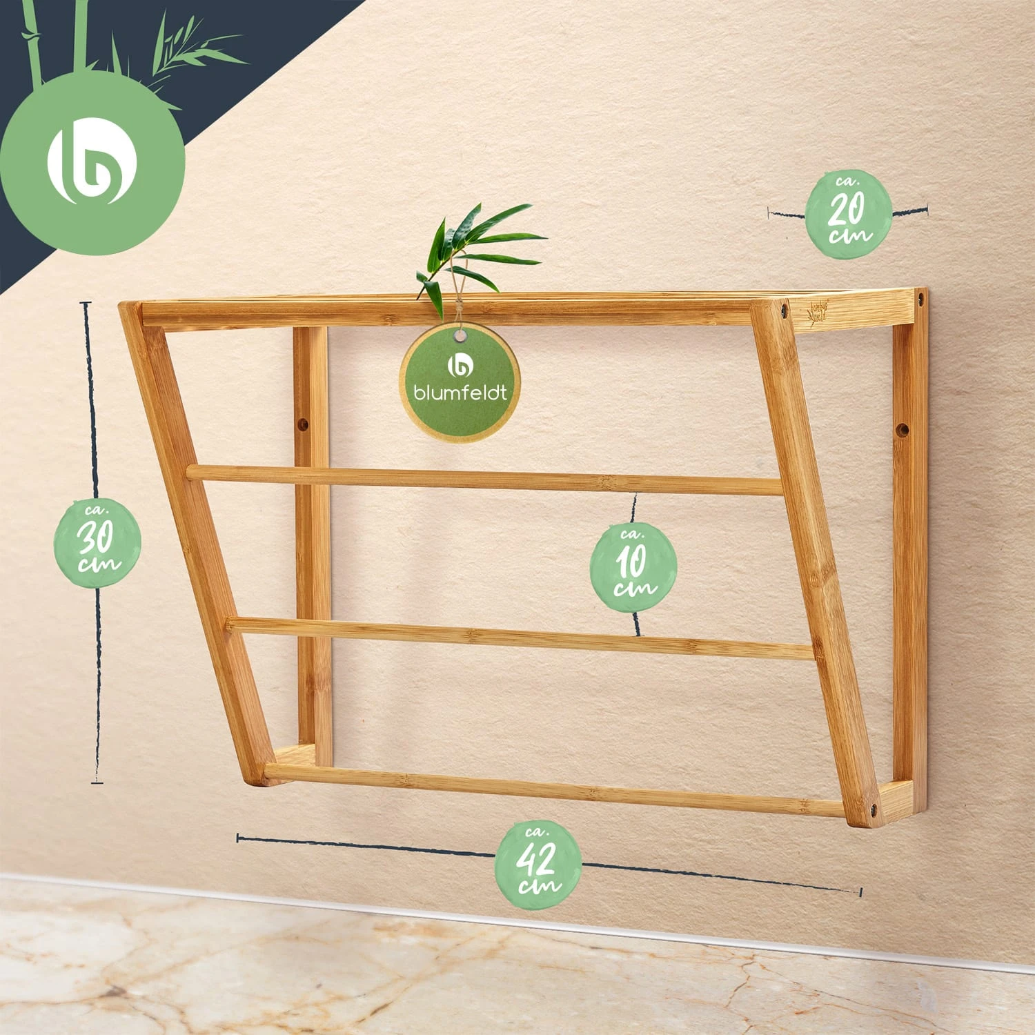 Ordnung ist das halbe Leben – besonders im Badezimmer. Denn das Bad ist ein Ort der Schönheit, Pflege und Entspannung. Mit dem blumfeldt Wandregal findet alles seinen Platz, vom Handtuch über den Peelingschwamm bis hin zu Rasierer und Schminke. Dank der 3 runden Stangen kannst du hier deine Handtücher optimal ausbreiten und zum Trocknen aufhängen. Zudem hast du nach dem Bad oder der Dusche das Badetuch rasch zur Hand. Bei der täglichen Körperpflege ist dir also reichlich Komfort gegeben. Dies wird durch die obere Ablagefläche am Regal noch unterstrichen: Hier finden allerlei Badutensilien ihren Platz. Am besten bringst du es direkt neben der Dusche oder über der Toilette an die Wand an. So sparst du nicht nur ordentlich Platz in deinem Bad, du hast auch alles was du täglich brauchst in unmittelbarer Reichweite.