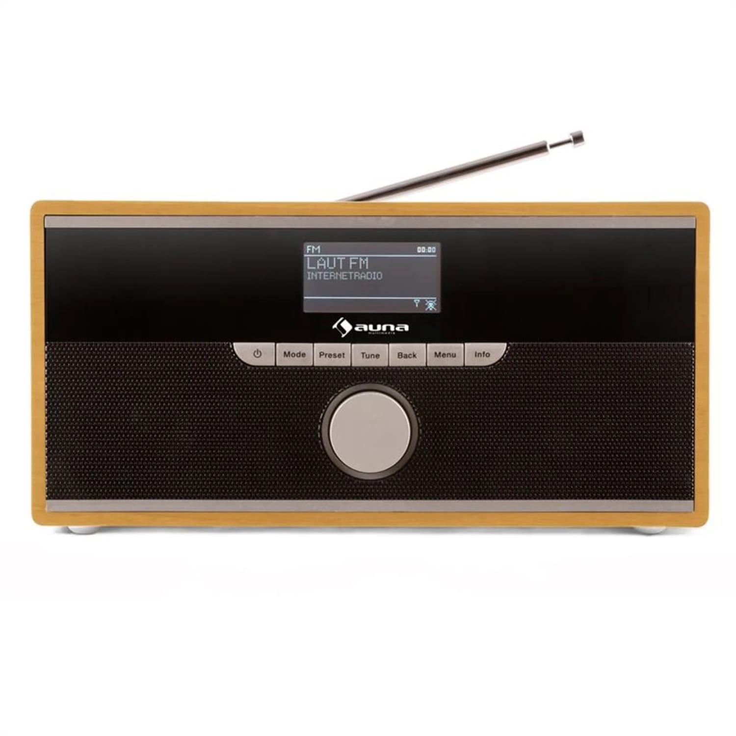 Für Ästheten und Sound-Enthusiasten: Mit dem Modell Weimar präsentiert auna ein DAB-Radio mit hervorragenden Klangeigenschaften in einem attraktiv-schlanken Holzgehäuse, das sich dank übersichtlichem Display sehr komfortabel bedienen lässt.