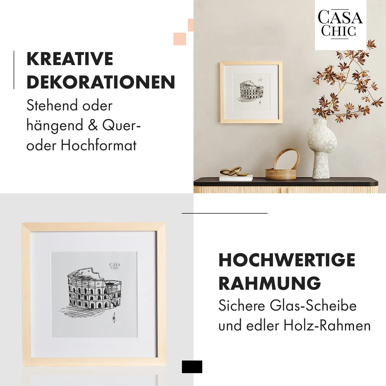Schlicht, dezent und quadratisch: Das ist der Casa Chic by blumfeldt York Echtholz-Bilderrahmen. Sein reduziertes Design schenkt jedem Bild oder Foto – mit oder ohne Passepartout – den nötigen Raum. Ob als Aufsteller oder als Wandbilderrahmen, im York finden deine Lieblingsfotos den idealen Platz. Konserviere hinter der Frontscheibe aus Sicherheitsglas besondere Momente und lasse dir jeden Tag aufs Neue ein Lächeln ins Gesicht zaubern.
